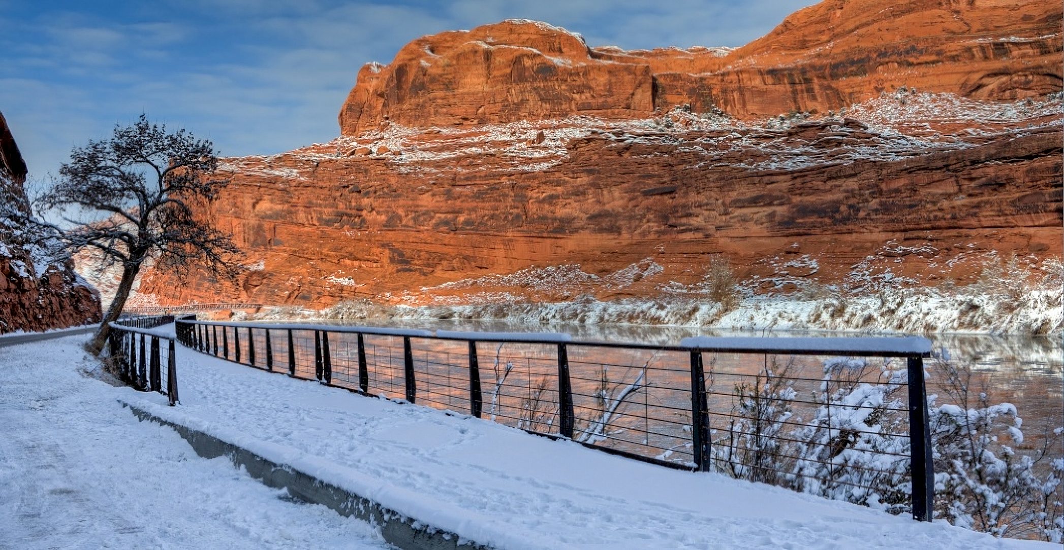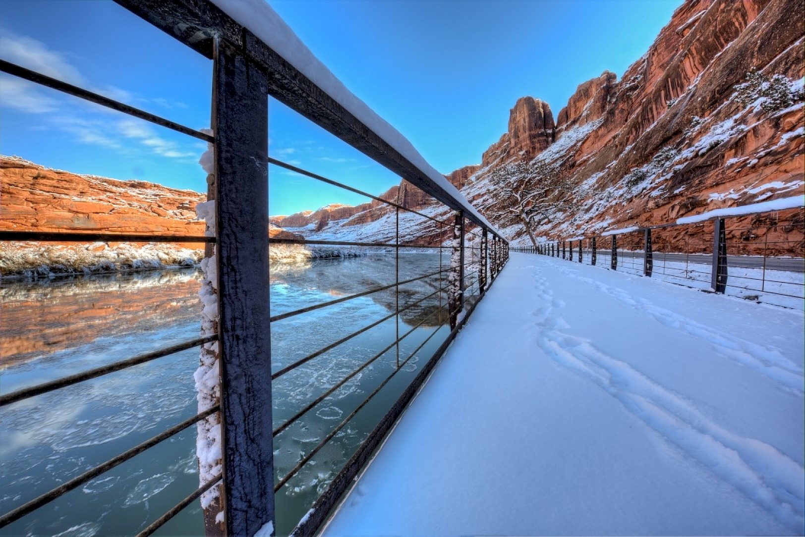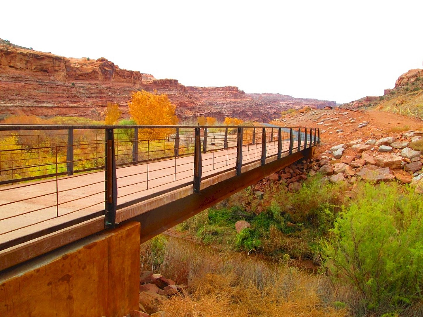 Second, it was imperative the coating provide robust protection against the elements as paint maintenance would be extremely limited given the heavy traffic this trail will see and the close proximity to the river and highway that runs only feet away. Also, despite the hot arid summers this desert area is known for, there is frequent threat of harsh winds carrying abrasive sandstone, springtime flash floods, and wintertime snow and ice. Only hot-dip galvanizing can offer such abrasive resistant corrosion protection to the handrail against weather like this.