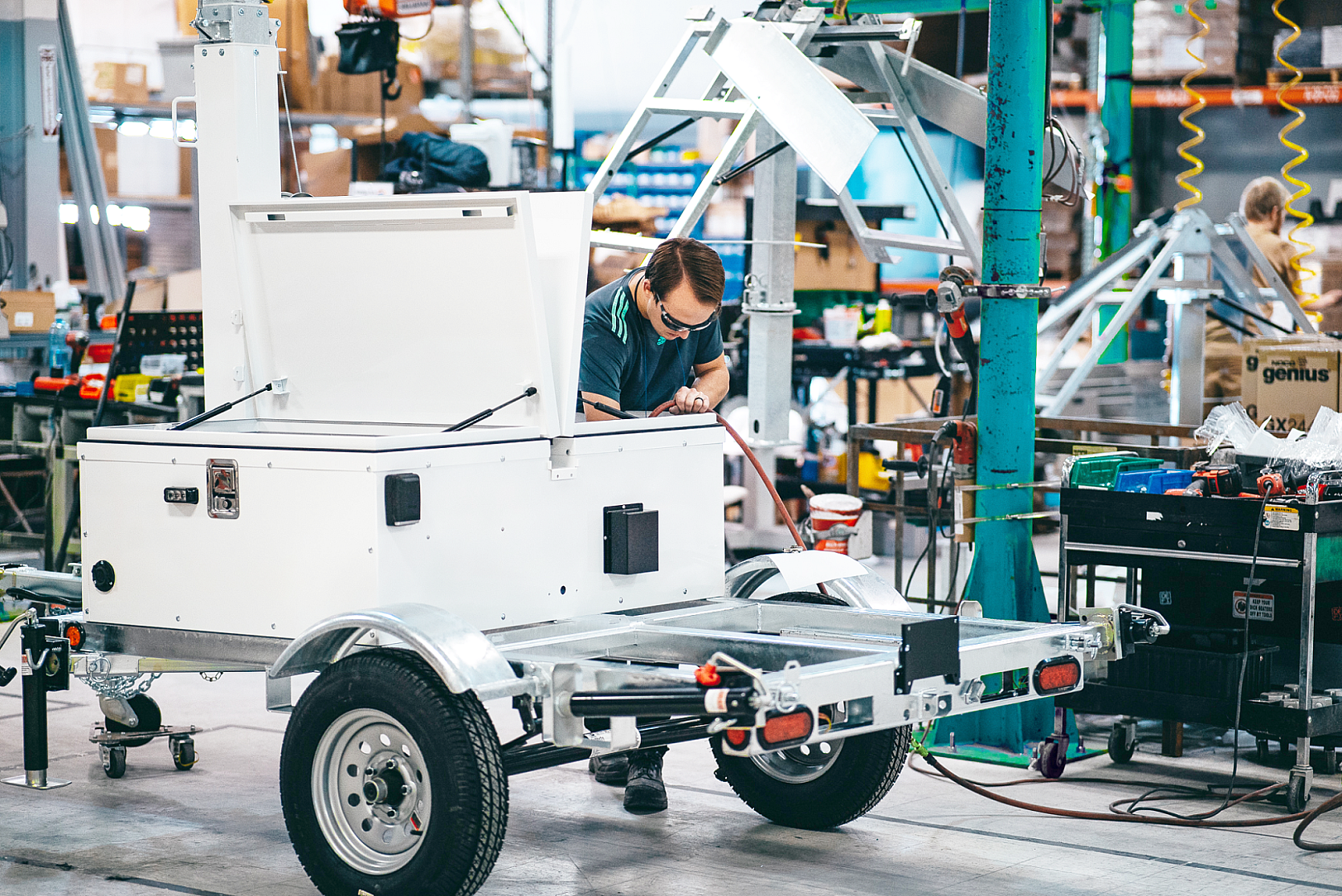 The trailer frames, fenders, 2-5” masts, solar array assemblies, mounts and wing assemblies underwent hot-dip galvanizing, ensuring superior durability, appearance, and long-lasting corrosion protection. This decision was particularly vital as many of the units were deployed along highways where durability is paramount.