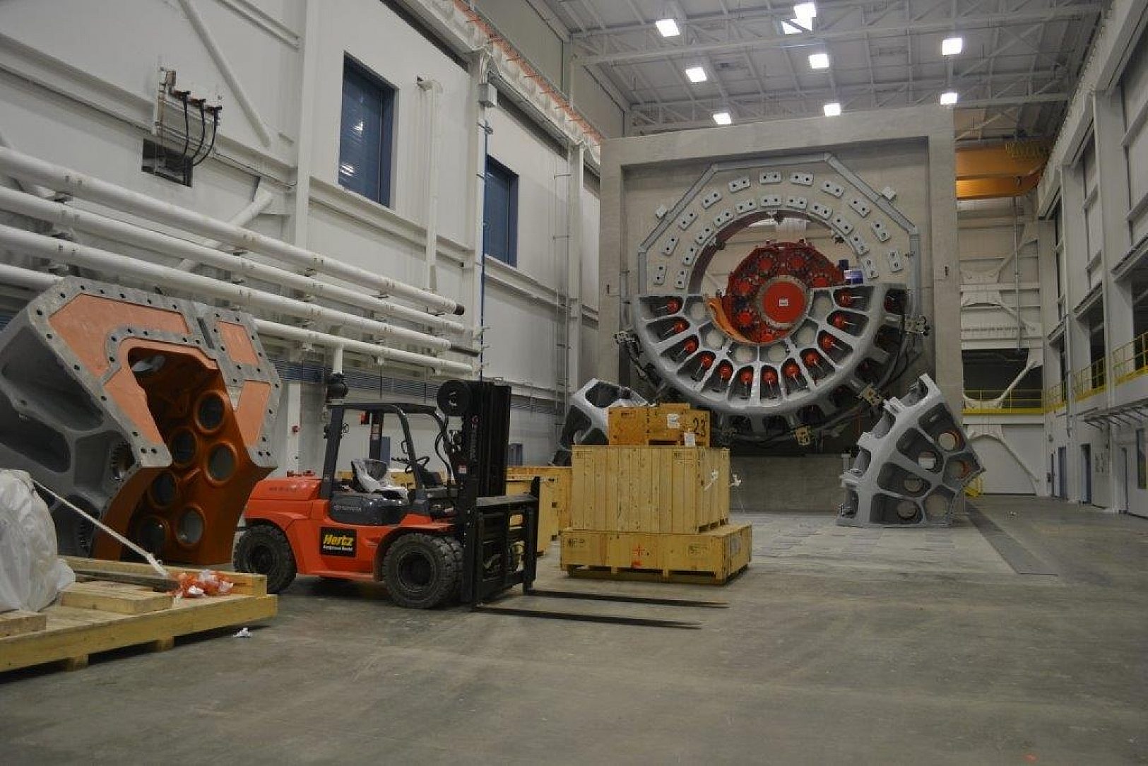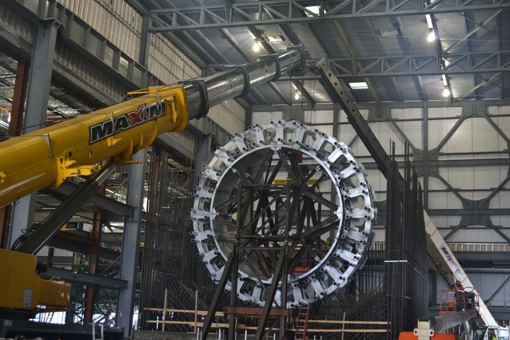 This is a one of a kind facility and will be the worlds most capable wind turbine drivetrain testing facility. There will be almost 1,000,000 lbs. of steel components cantilevered off the embedded ring and its surrounding concrete structure. The final mounting surface was accurate to plane within 0.028 over the entire face.
