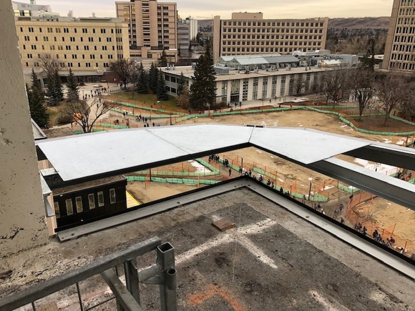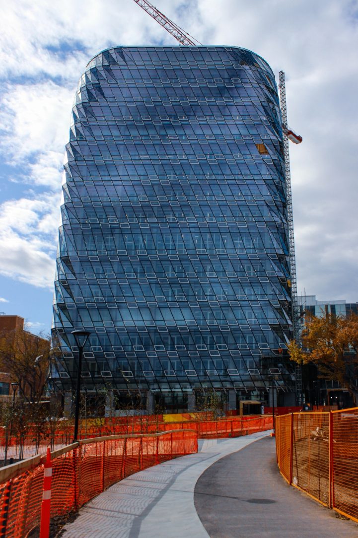 In September 2017, the crews on site began demolition of the existing tower, recycling the concrete, steel and glass while keeping the main support of the tower intact. Two additional floors were added, then the reconstruction of the exterior continued. According to the University of Calgary, “Unlike any other building on campus, MacKimmie Tower’s double-skin exterior will respond to changing weather and work with the exposed concrete structure and mechanical systems to minimize energy use and optimize internal temperature, daylight, and air quality for occupants.” The reuse of the existing structure reduced the amount of waste created during construction, a key initiative that aligns with the university’s Institutional Sustainability Strategy.