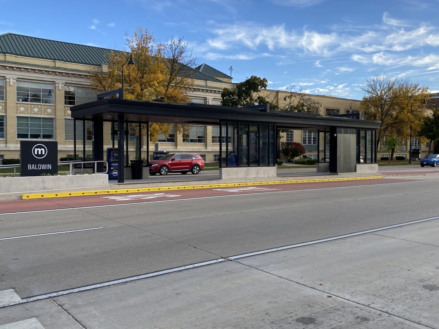 After more than a decade of planning, a complete redesign and 18 months of construction, phase 1 of the Madison Metro BRT Line is complete with 45 shelter stations. The new stations are equipped with benches, heaters and overhead covering. Each contains a farebox where riders can reload their cards with cash, and real time tracking to give minute-by-minute updates on when passengers can expect the buses to arrive. They’re also raised off the ground, allowing for easier accessibility on and off the bus.
