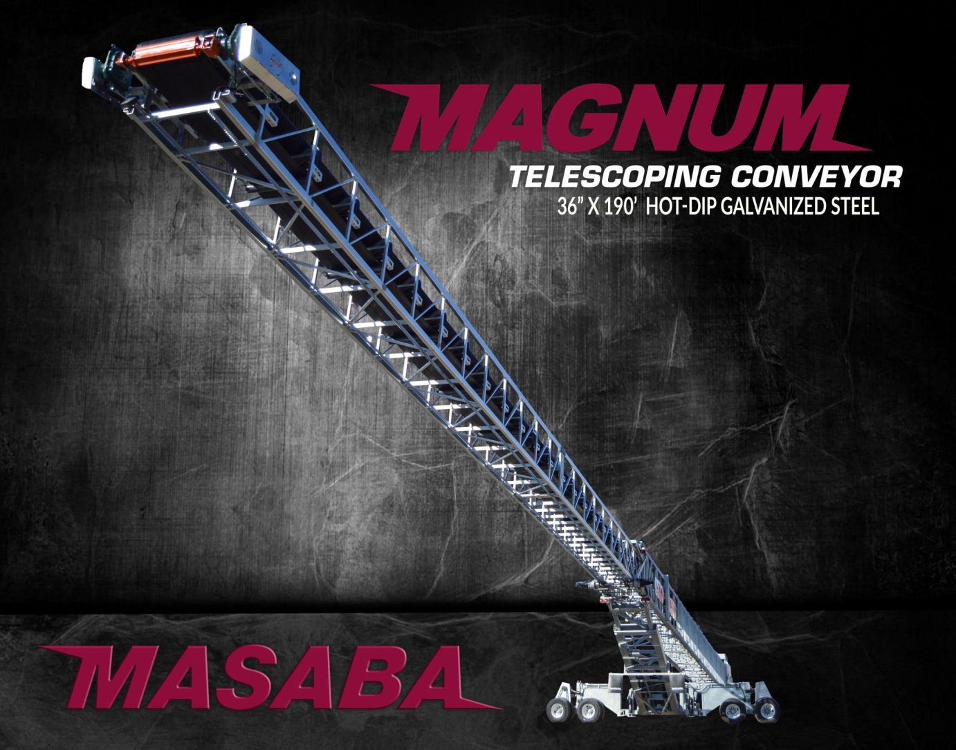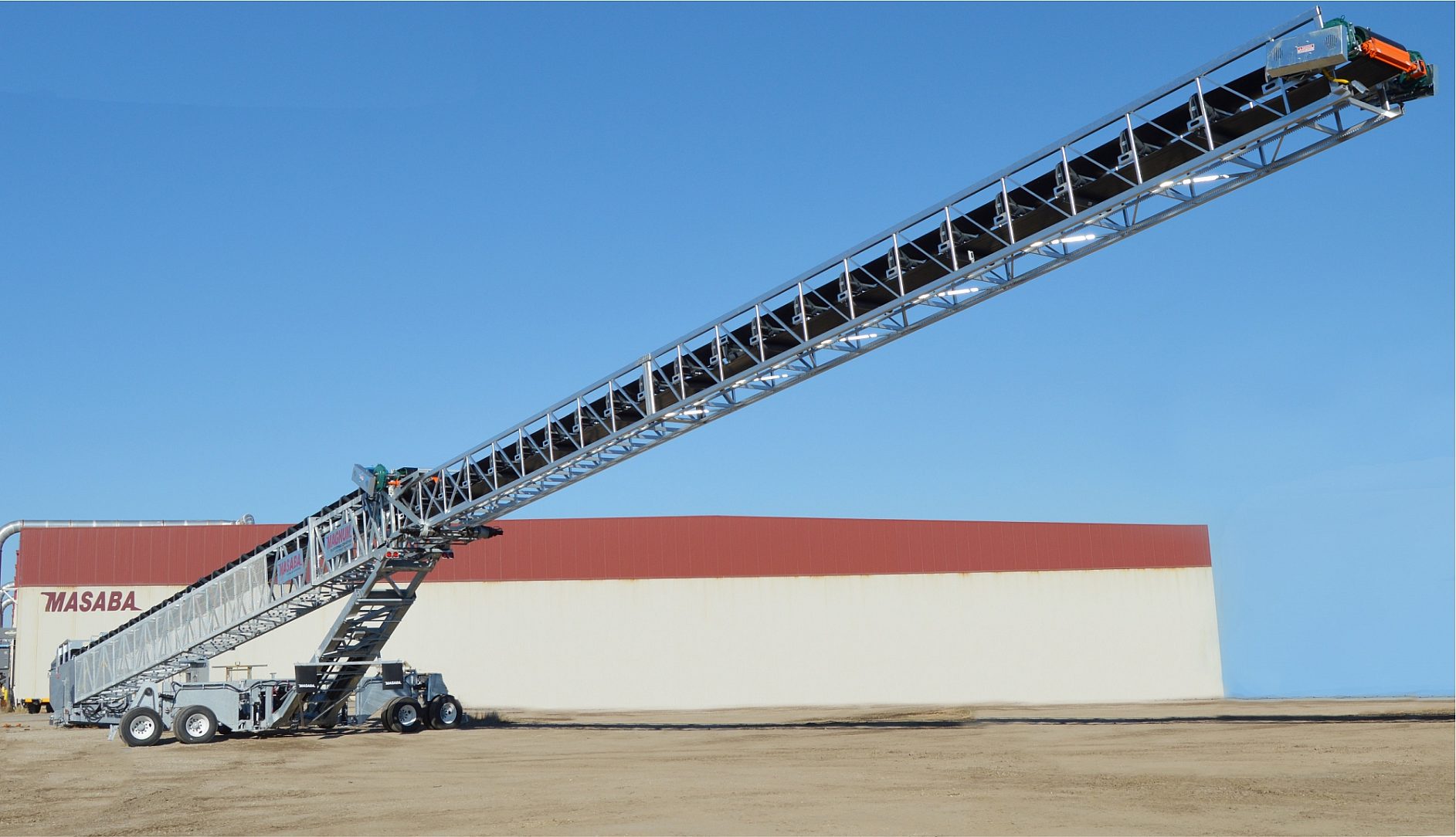 Masaba worked with Turnkey Processing Solutions (TPS) in 2018 to design and build a 28 Ton, 36” x 190’ telescoping conveyor intended to stack corrosive materials in programmable pile sizes and shapes. The Masaba Magnum Telescoping Conveyor, with its patented drive track technology, provides constant positive traction and the smoothest operation of any telescoping conveyor, making it the safest and most durable in the industry. Combined with the user-friendly touch-screen PLC with multiple options for stockpile selection, the Masaba Magnum was the equipment of choice for Turnkey Process Solutions’ project.