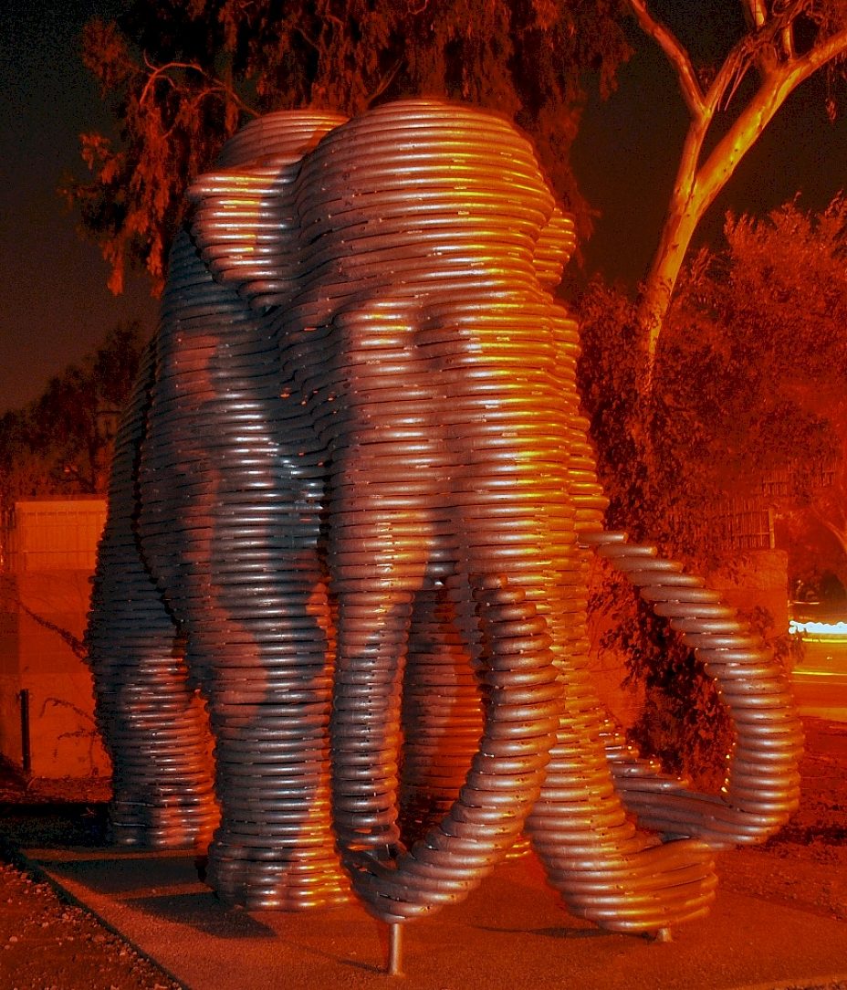 The entire mammoth is made of a series of bent pipes of various lengths and sizes.