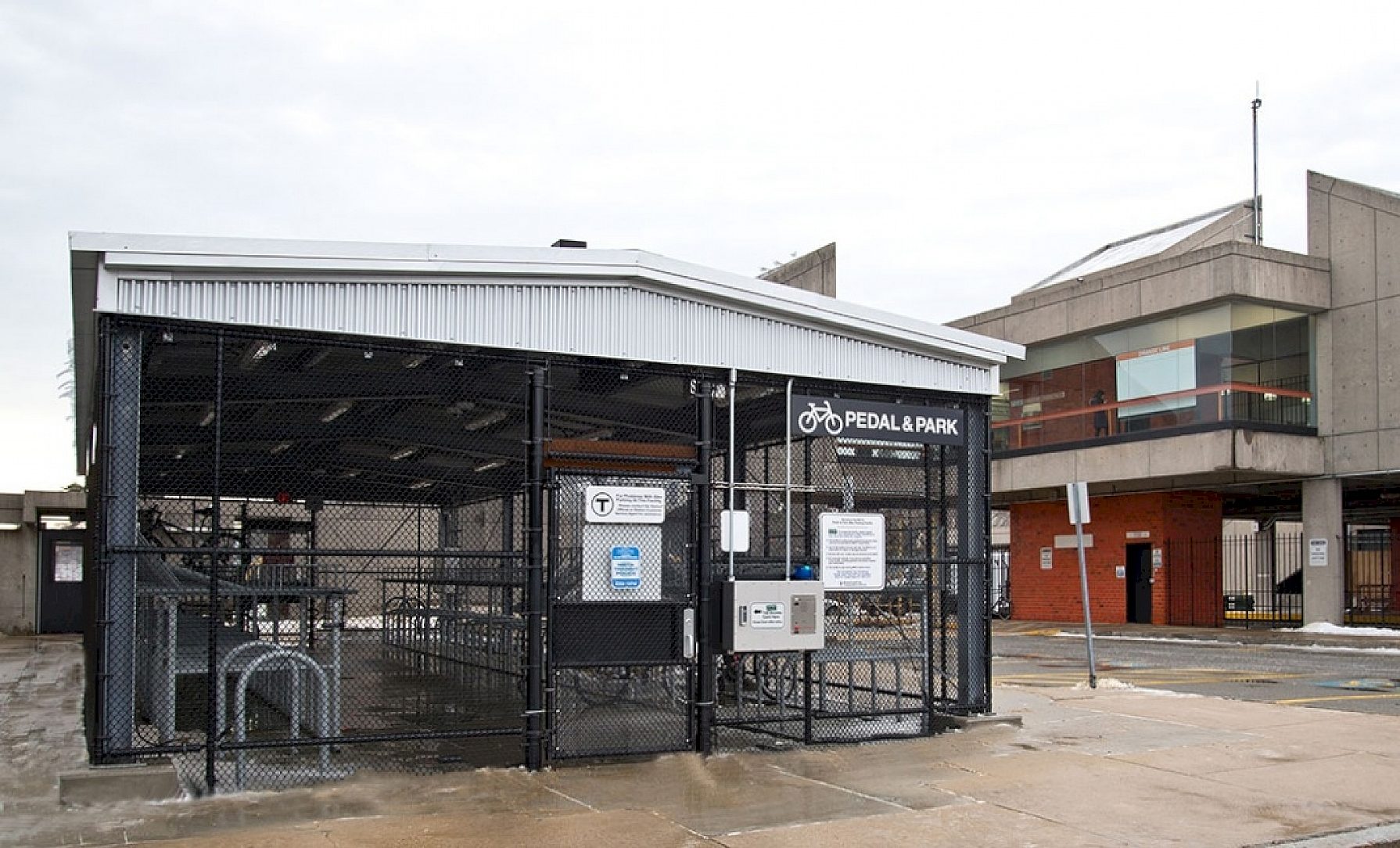 The Oak Grove Pedal & Park Facility is the first of ten new high security bike parking facilities opened in 2013. Two federal programs provided $6.1 million in funding to construct twelve Pedal & Parks and fifty covered bike racks at MBTA transit and bus stations. Overall, the program will add approximately 1,600 bike parking spaces to the existing 4,200 space inventory, or a 40% increase.