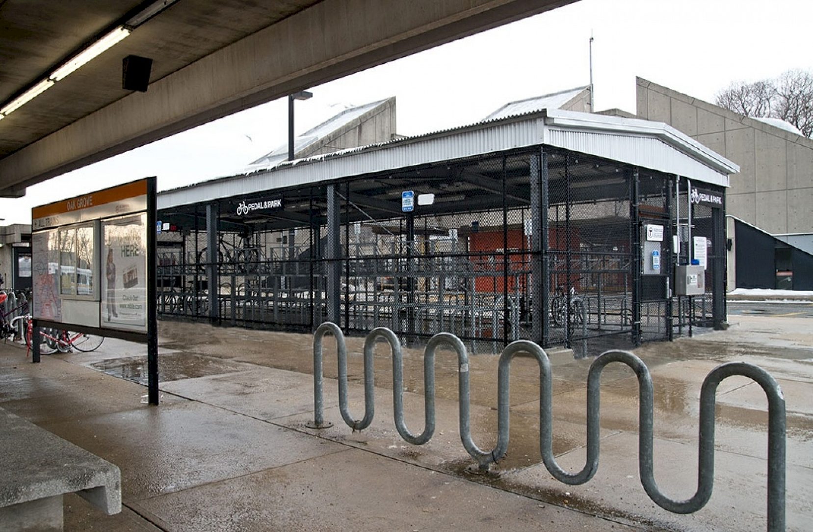 The Oak Grove Pedal & Park is fully enclosed and provides parking for 50-150 bikes. Each facility is provided with six security cameras, lighting, and a police intercom system. The general public sentiment is that customers would be more likely to bike to transit if there was a secure place to leave their bikes.