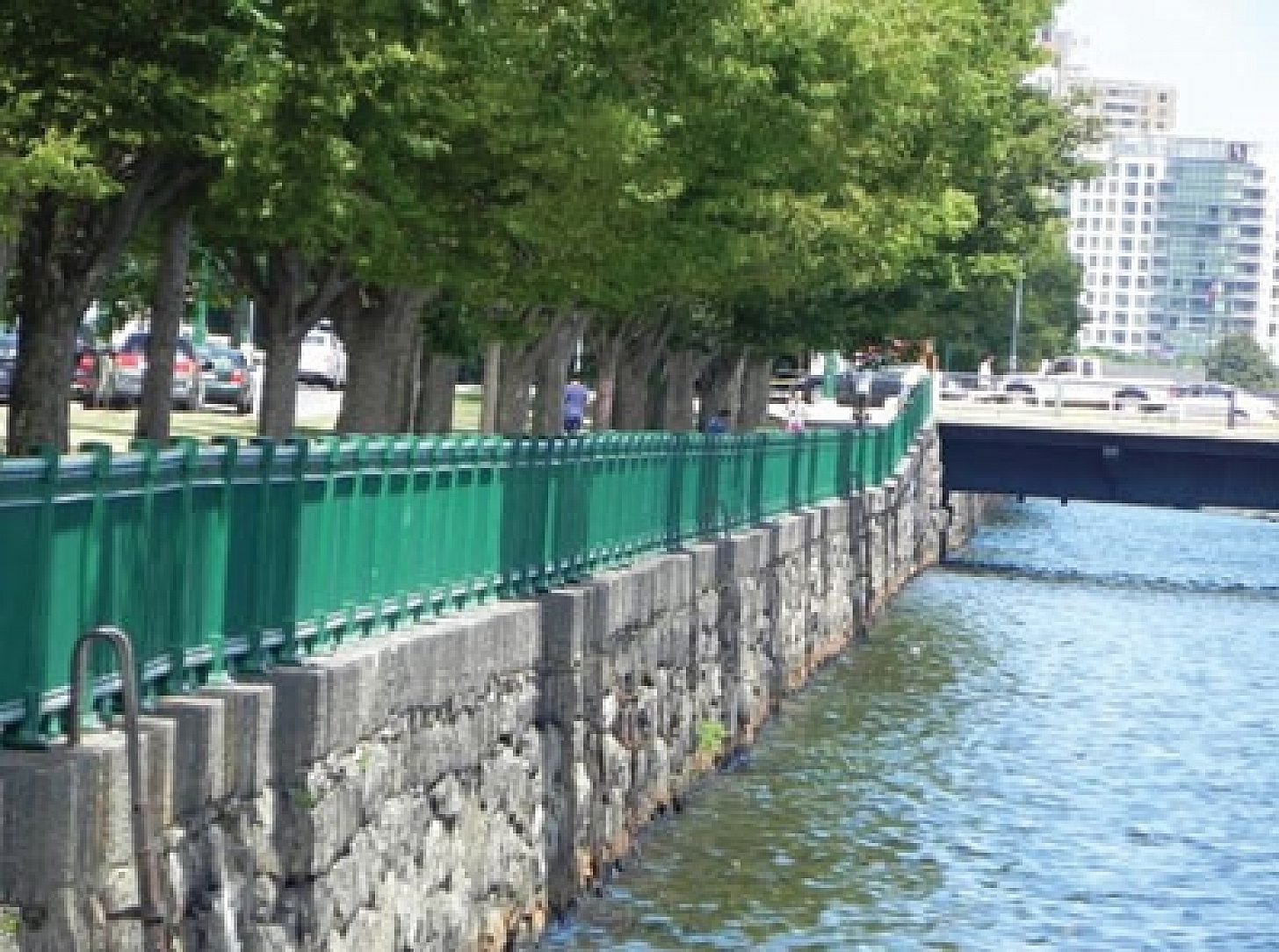 The public and anyone entering or leaving Boston sees this landmark bridge, which is close to the waterway near the ships. Traffic tie-ups are common on Memorial Drive, leaving several hundreds of drivers to inspect the scenery so the lovely coloring and corrosion free nature of the railing has high visibility.
