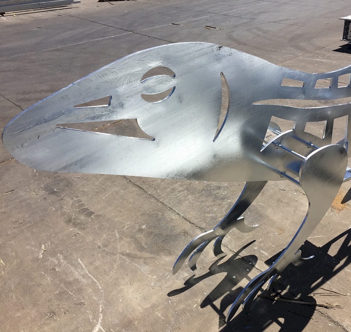 To protect these steel creatures, each were hot-dip galvanized then treated with a patina finish to blend with the colors of the surrounding desert area. Hot-dip galvanizing was the first choice to provide corrosion protection for this artwork. The designers knew it would provide a clean and robust protective coating for a long lasting finish. Also, galvanizing was the only coating that could provide needed protection around the cut edges and silhouette of the animals. Careful attention was made during the processing of the hot-dip galvanizing to ensure the resulting coating and surfaces were smooth.