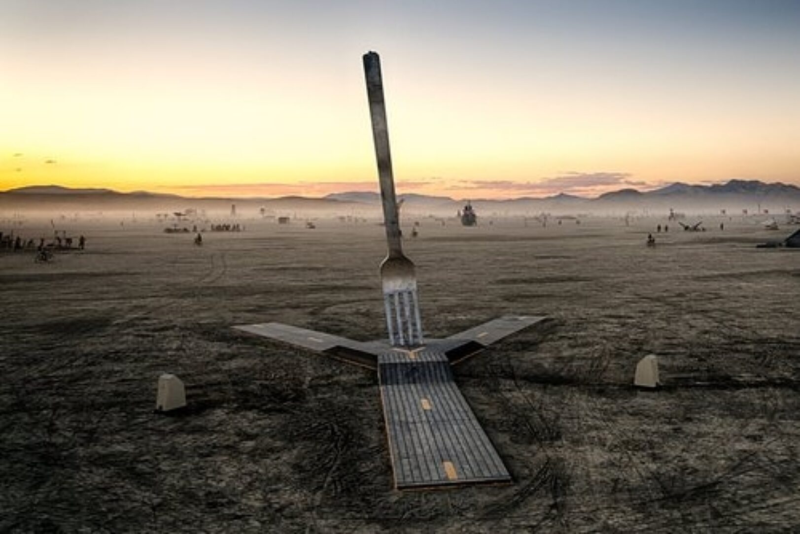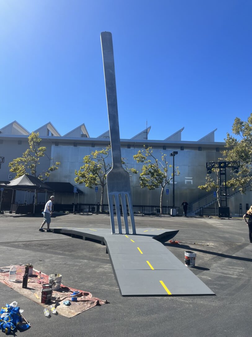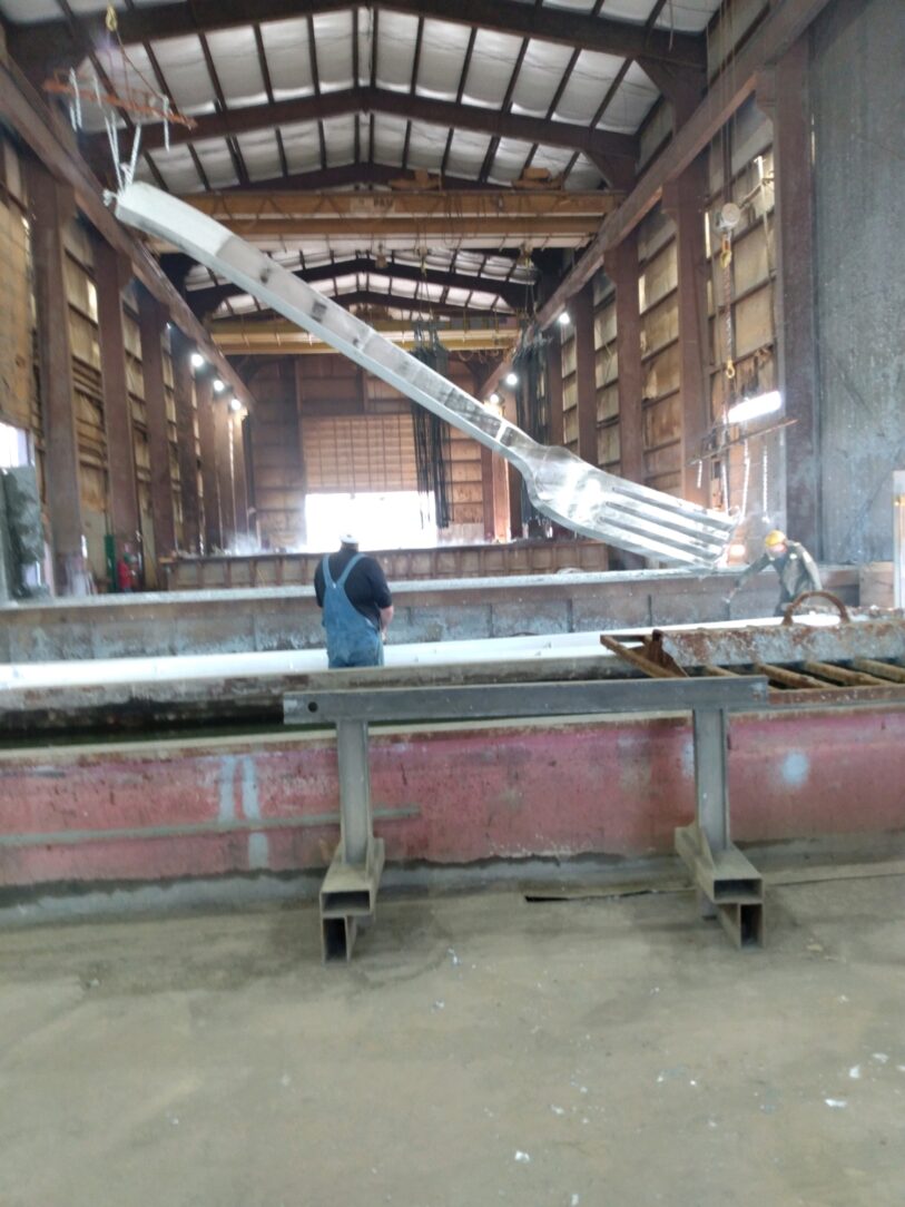Hot-dip galvanizing was specified for the very corrosive environment for this piece of artwork. The fork was initially displayed in the desert of Nevada for 9 days during the Burning Man festival in 2022. In this environment there are sever winds and sandstorms that could potentially destroy most other finishes.