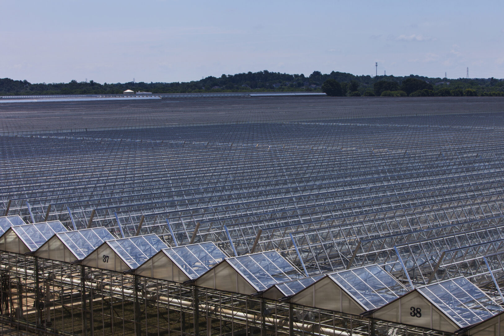 All of the structural and mechanical components of the greenhouse were galvanized. The columns, A-frames, cross bracing, water piping, manifolds, threaded rods, crane rails and miscellaneous hardware.