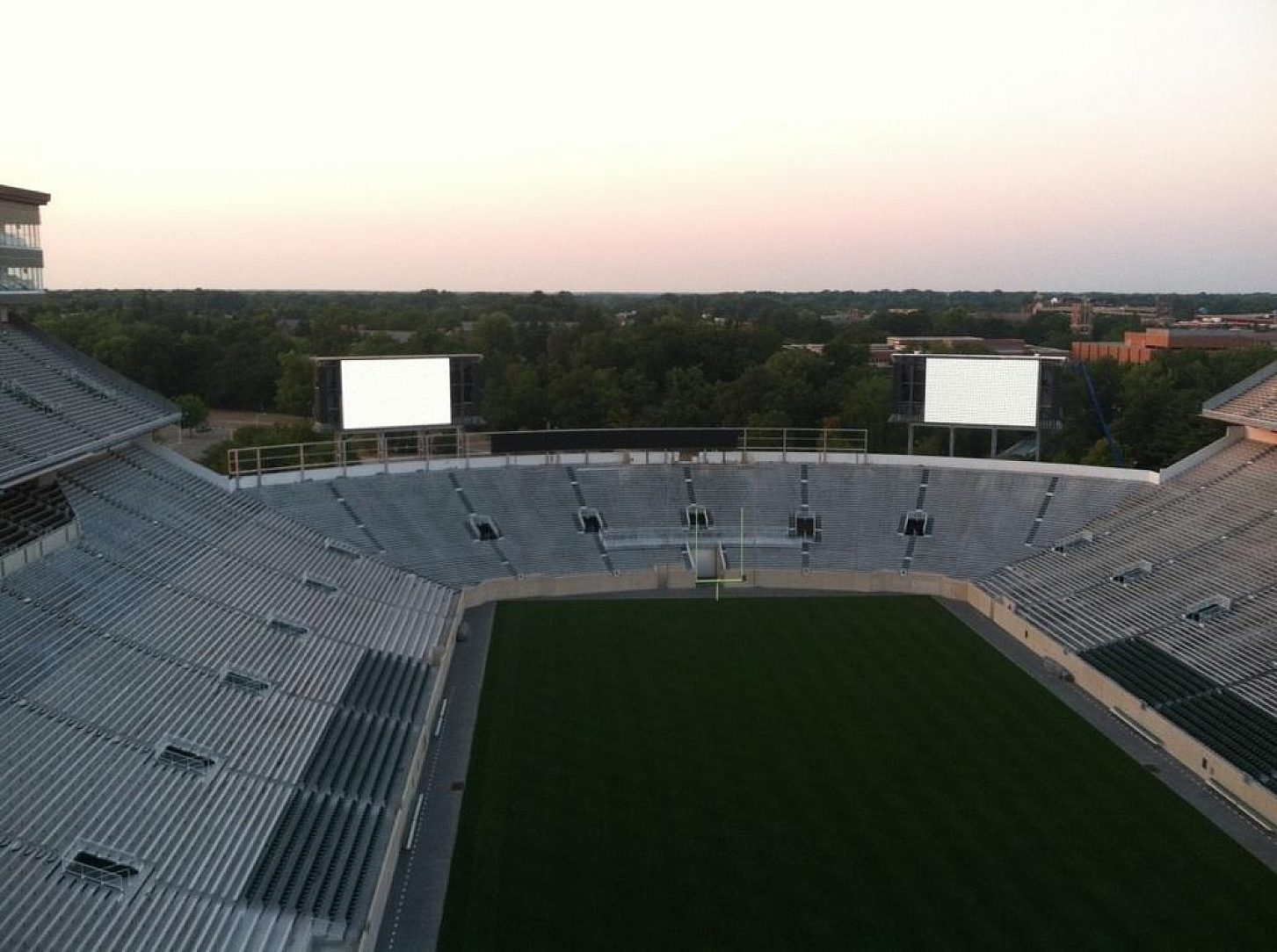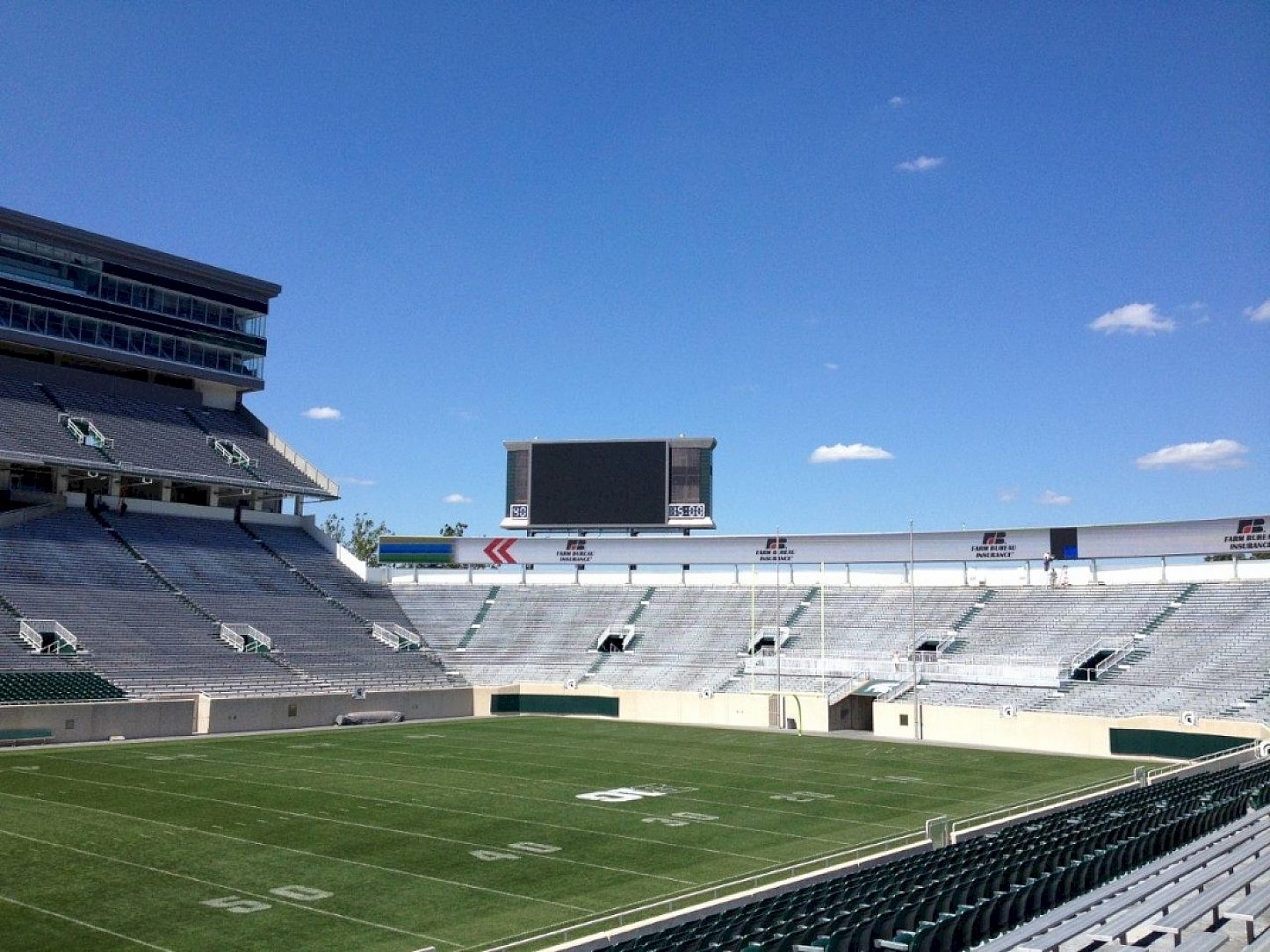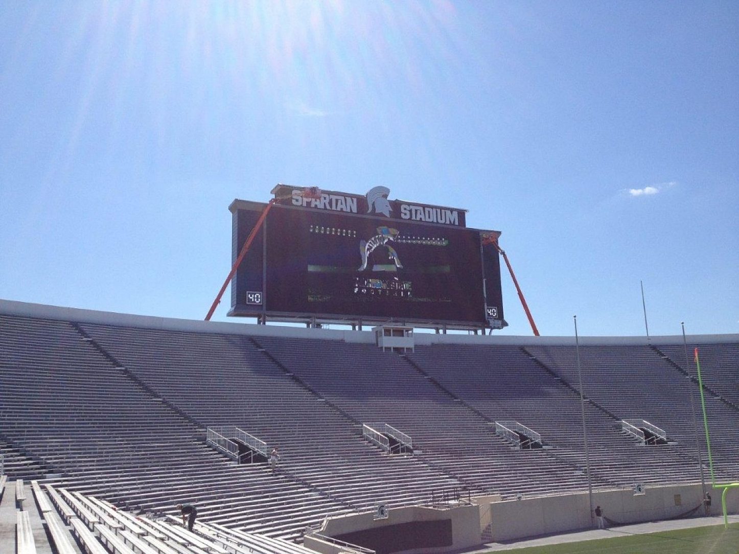 The MSU Spartan football team was in its off-season but activity at the stadium was in overtime. Three massive new video scoreboards were under construction this summer, and made their debut at this falls home opener against Boise State.