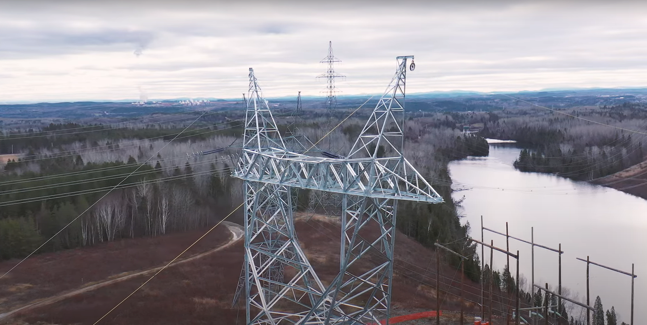With the closure of two nuclear generating stations that were closer to demand centers than most hydroelectric generating stations additional transmission grid is required. This line carries 735KV electrical supply from the power stations on the Manicouagan River along a 200-mile path to the Saguenay grid center.