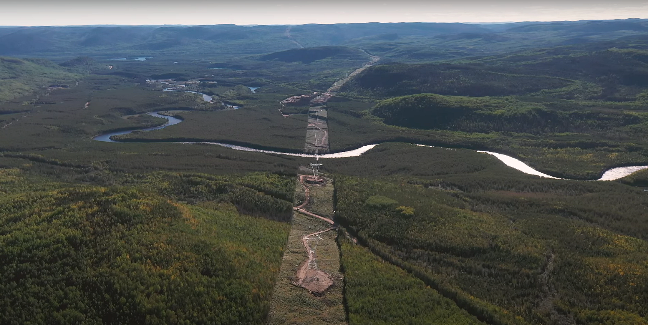 The northern watershed of the easternmost Saint Lawrence River has been a sight of many large hydroelectric projects for the better part of a century. Growing demand and the closure of nuclear plants is changing the needs for electrical transmission routes and this new 200 mile 735 KV line is part of the reorganizing of power flow in eastern Canada.