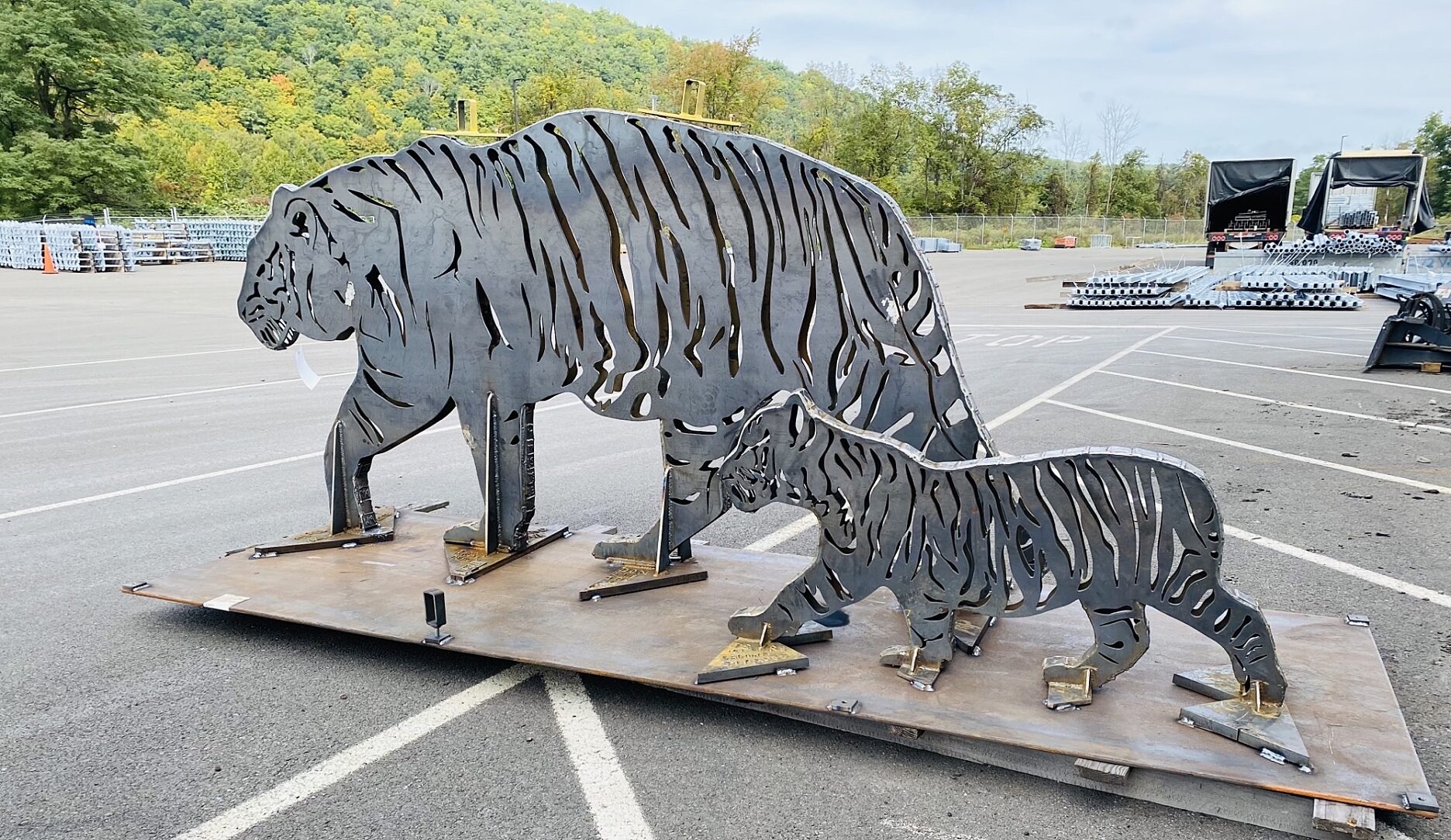 Steel plate donated by Pacemaker Steel and cut into the shape of Tigers by Raymond Manufacturing, this sculpture was welded together by Private Passage prior to galvanizing and painting. Standing at approximately 5’ high and 7’ long, the beauty of these bright orange tigers is hard to miss. All materials, design and fabrication for this project donated by the various companies involved to make a statement to all students of the school district that though they forage their own path, there is always someone to help guide them on their way.