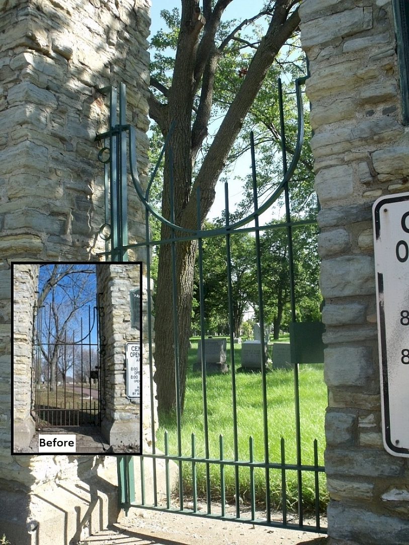 On June 2, 2002, Minneapolis Pioneers and Soldiers Memorial Cemetery was placed on the National Register of Historic Places. Built in 1928, the Minneapolis Pioneers and Soldiers Memorial Cemetery's decorative steel fence and gates line the cemetery at the busy intersection of Lake Street and Cedar Avenue in Minneapolis, MN. Over the years the fence had fallen into disrepair and was in desperate need of renovation. The harsh Minnesota winters had taken its toll on the fence having been battered by snow plows and the use of corrosive deicers on Cedar and Lake over several generations. Historical preservation was of high importance. Reusing the original fence created constraints and challenges to the project. The goal was to replace as little of the original elements as possible. This, along with keeping the cemetery secure during the renovation, required a concentrated effort to quickly return the fence following dismantling. Also, the long lengths of delicate fence sections required careful handling through all steps of the process.