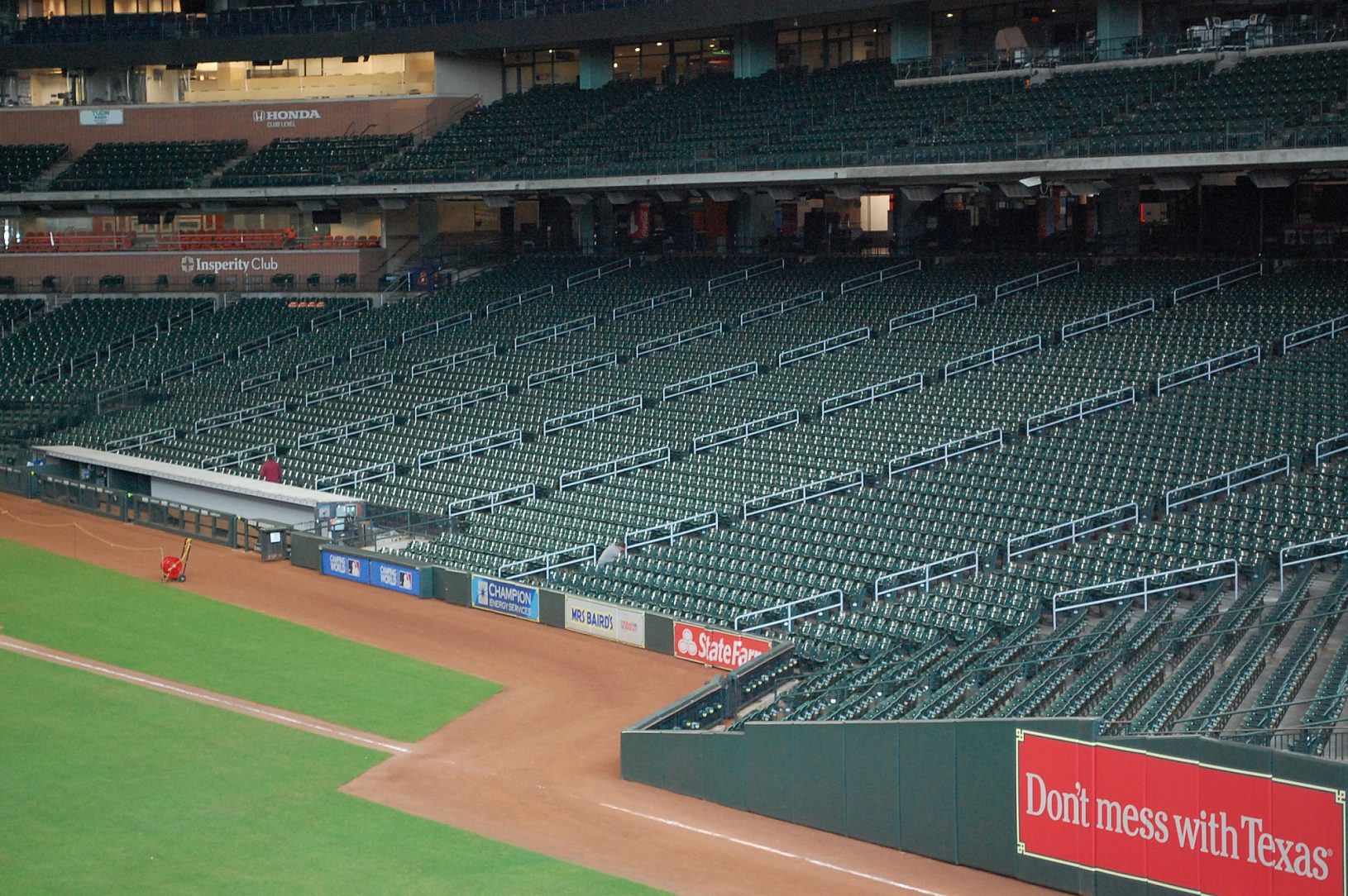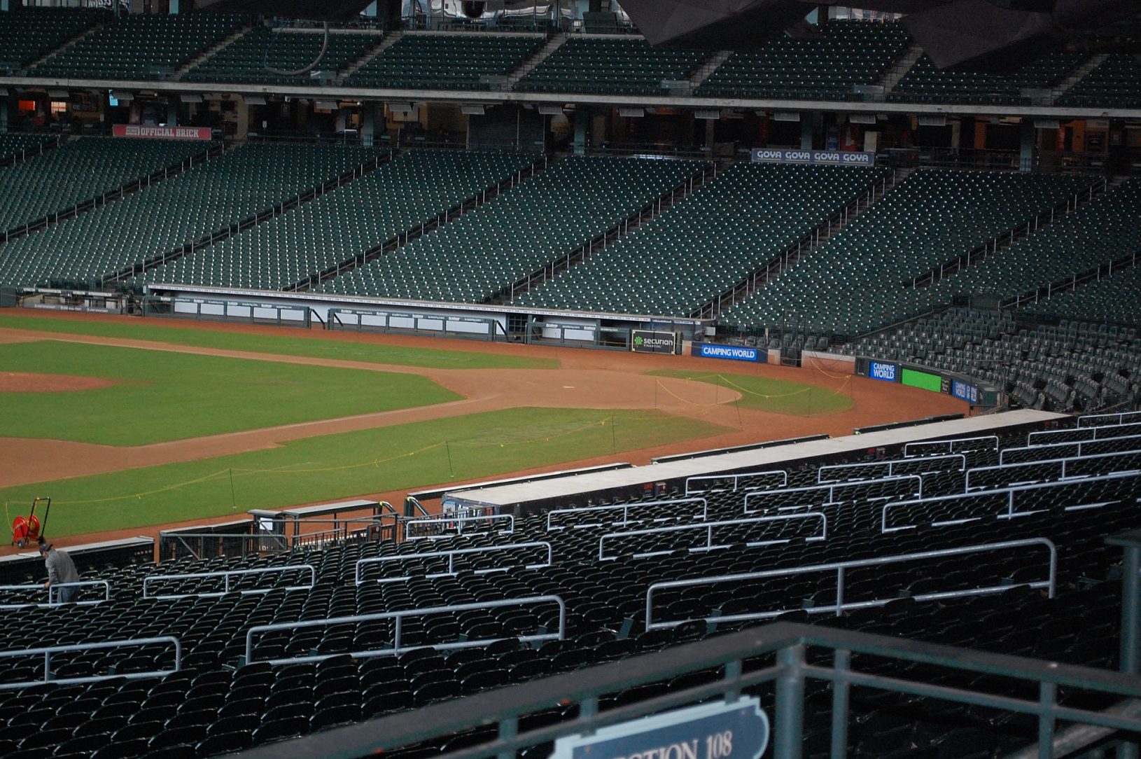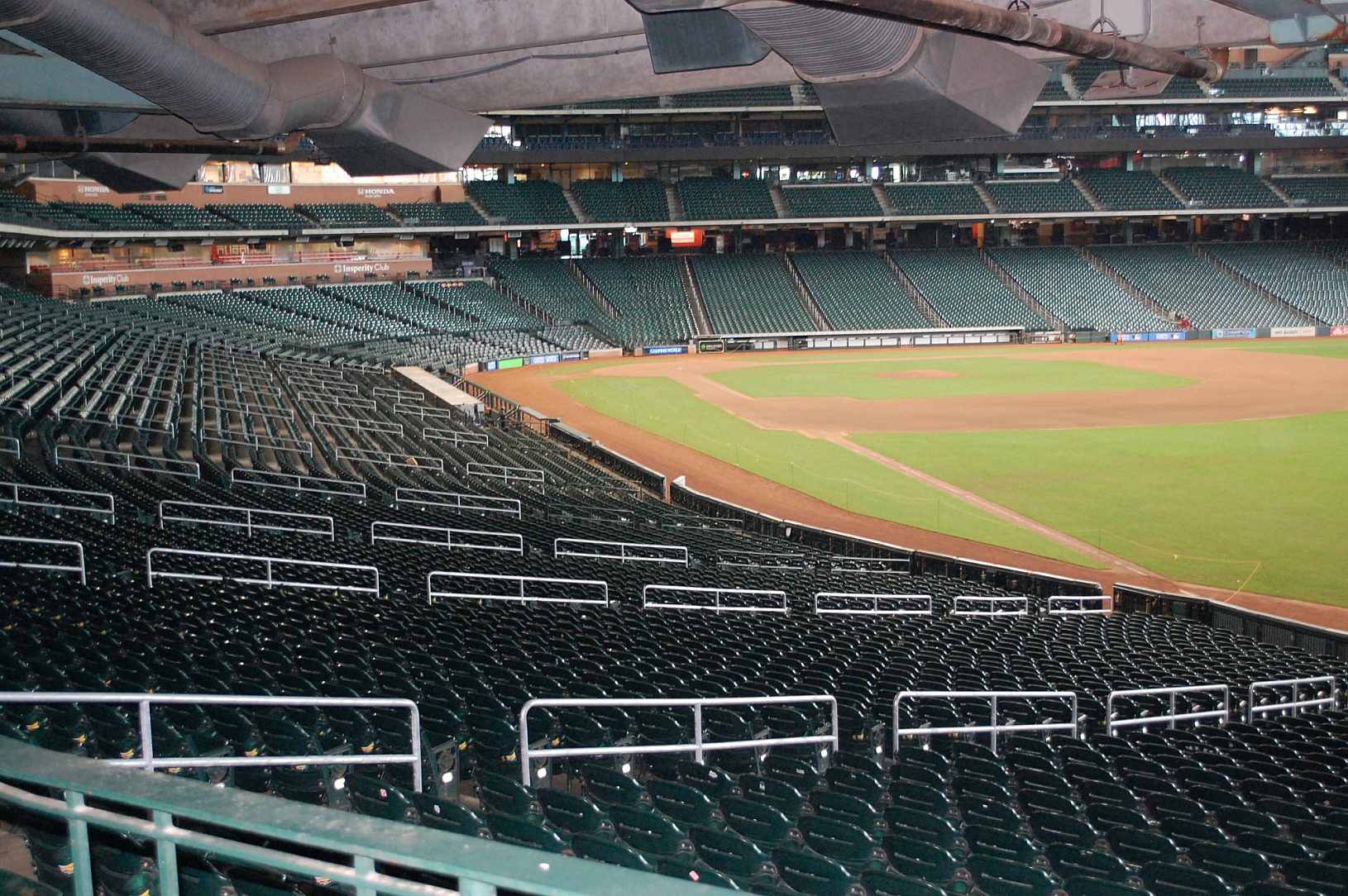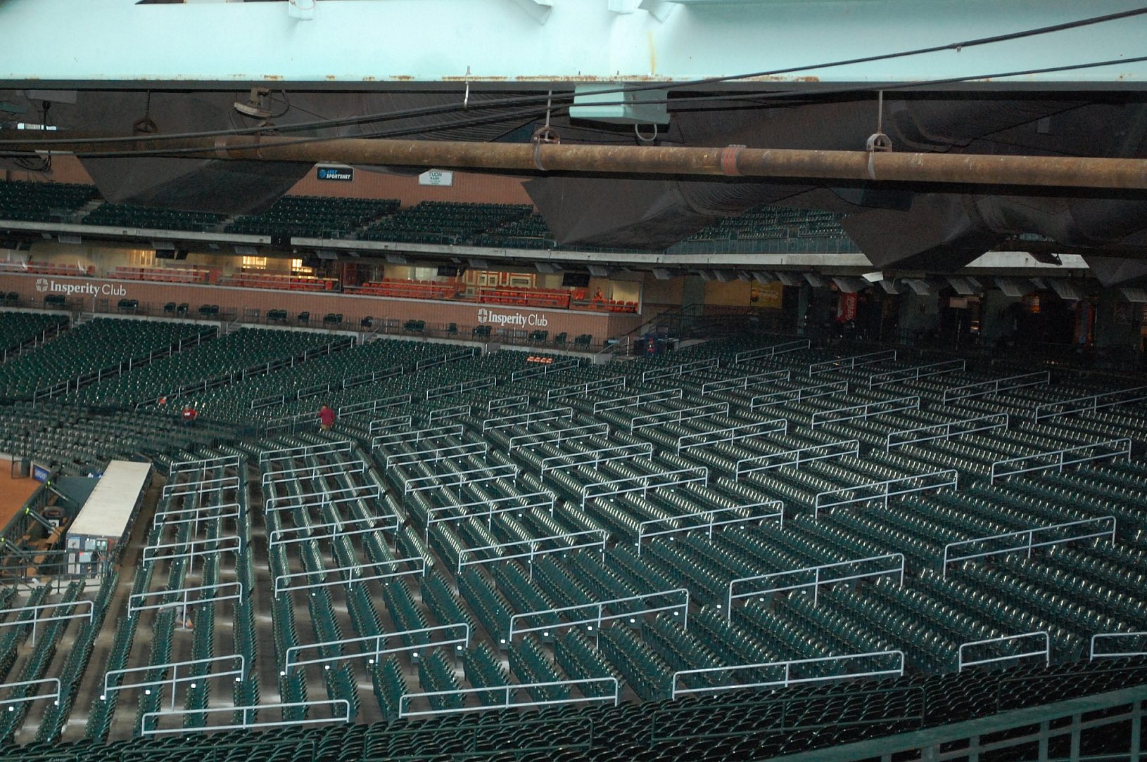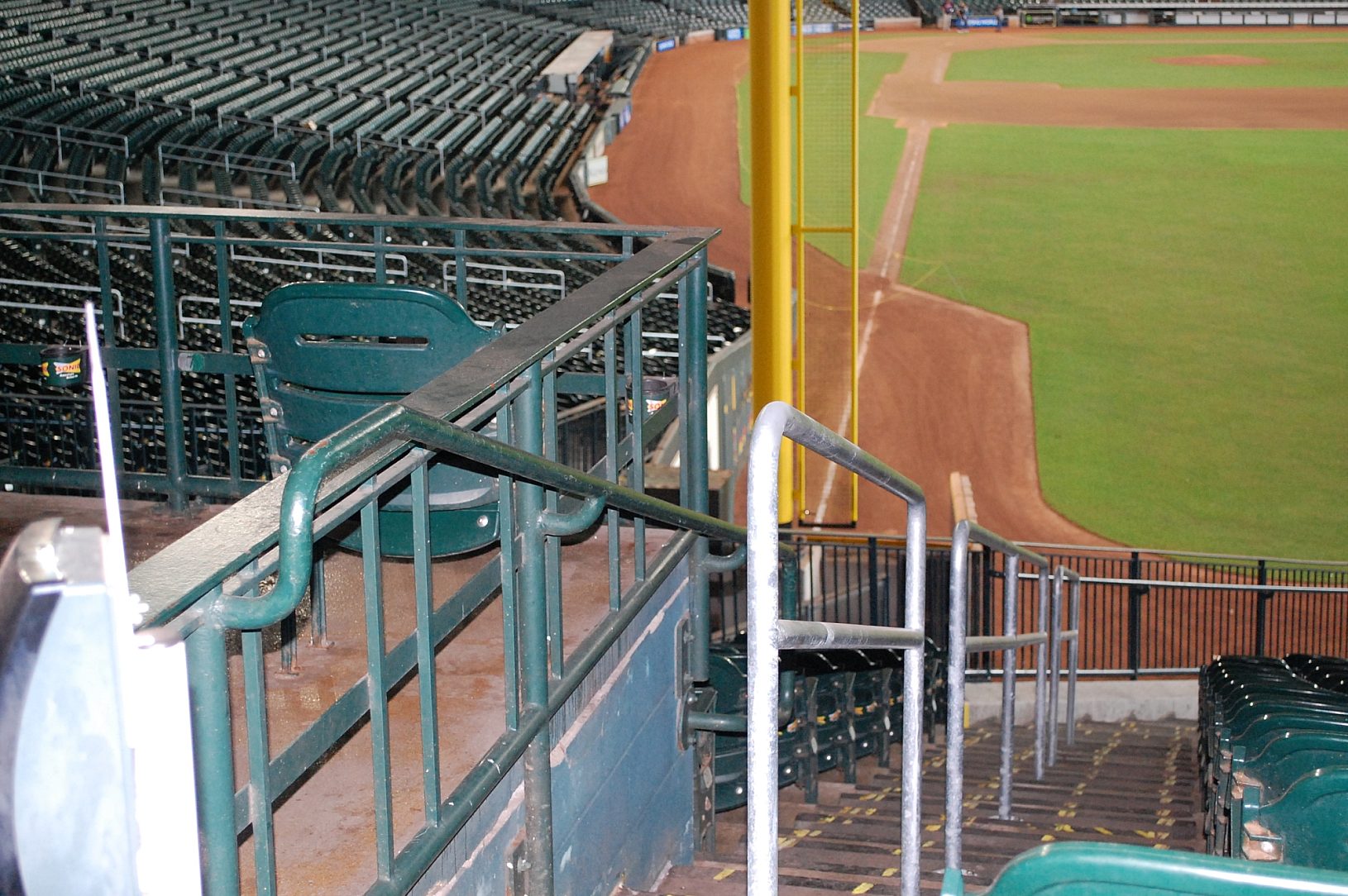 Although the retractable roof at Minute Maid Park provides a great experience for spectators, it exposes the stadium to the environment. This means that maintenance teams must keep a look out for accelerated deterioration, which can happen more quickly than at climate controlled stadiums. The main floor handrails is one issue that has caused problems for several years. After twenty years in service, the staff determined touch-up was no longer a viable solution and the original painted handrails would need to be replaced.