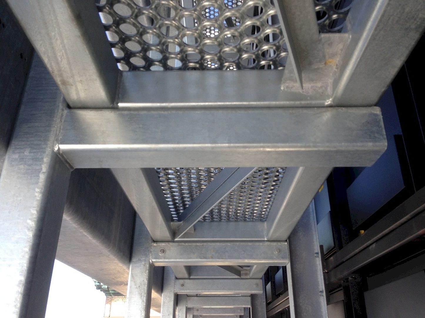 The structural signage will be exposed to the natural outdoor elements and galvanizing the structure would provide a corrosion resistant coating for an extended life. The structural framing is visible around the exterior of the display screen. Galvanizing was specified for the protection benefits and the aesthetically appealing quality as well.