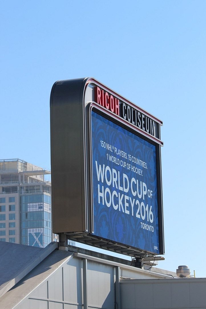 The Maple Leaf Sports & Entertainment billboards for the Ricoh Coliseum signage was designed to house building branding, LED decor lighting, and LED video advertisements.