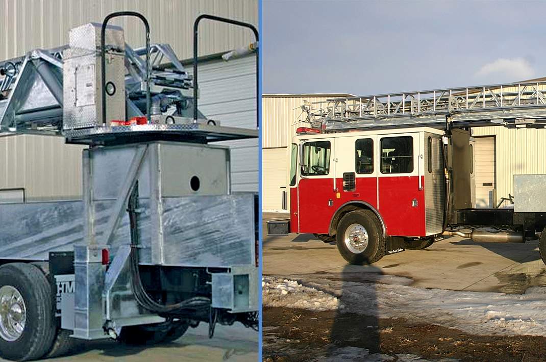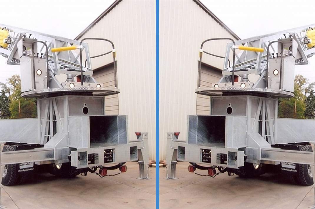 Completely contained on a customized low-boy trailer with a 1,500 gallon water tank for drafting and water shuttle operations, the MTT can be transported using a semitrailer to virtually any training site, and raised into position in 15 minutes or less. The mobile nature of the tower means the exterior covering of heavy gauge, galvanized, corrugated steel siding will be constantly exposed to the dings, scratches, splash-back, and even road salts associated with highway travel. Thanks to the dual barrier and cathodic protection of hot-dip galvanized steel, small nicks and abrasions will not compromise the stability of the structure.