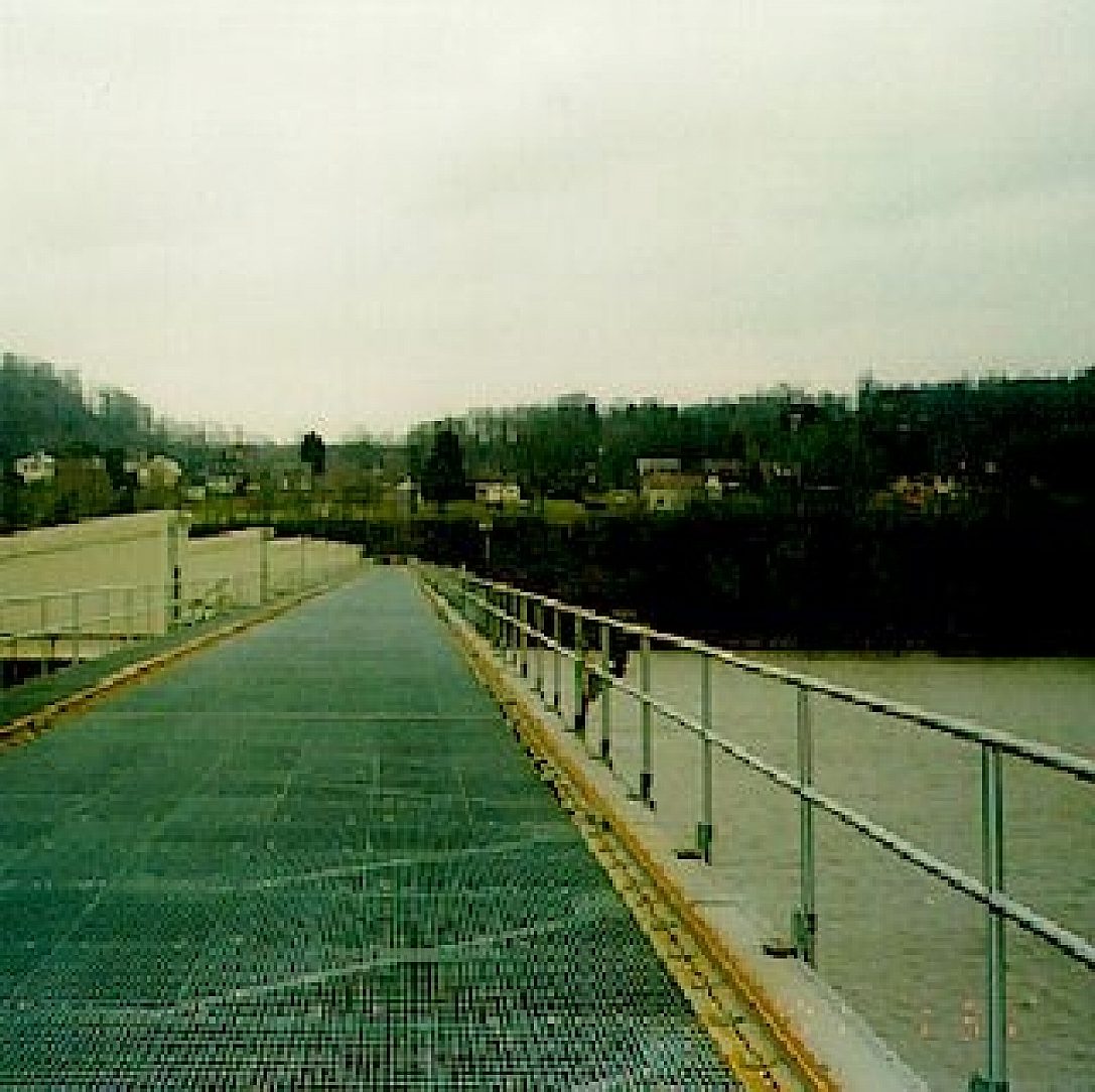 The aggressive environment of this location, i.e. three coal-fired power plants, one nuclear power plant, one chemical manufacturer and a metal smelting operation are all within a few miles of the locks and dam, made the coating choice critical. All of the handrail, parapets, stairwells and catwalk grating were galvanized, based on the fact that other galvanized material in service for 4 years showed no signs of corrosion of the substrate material.
