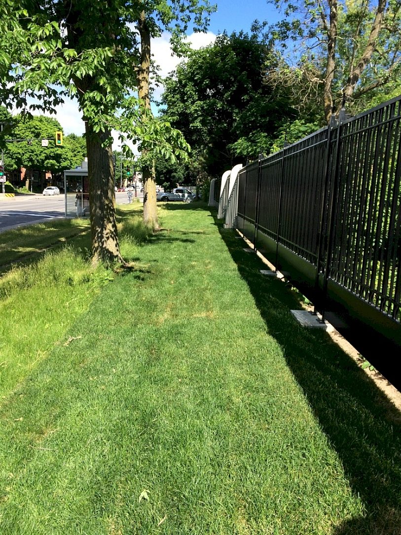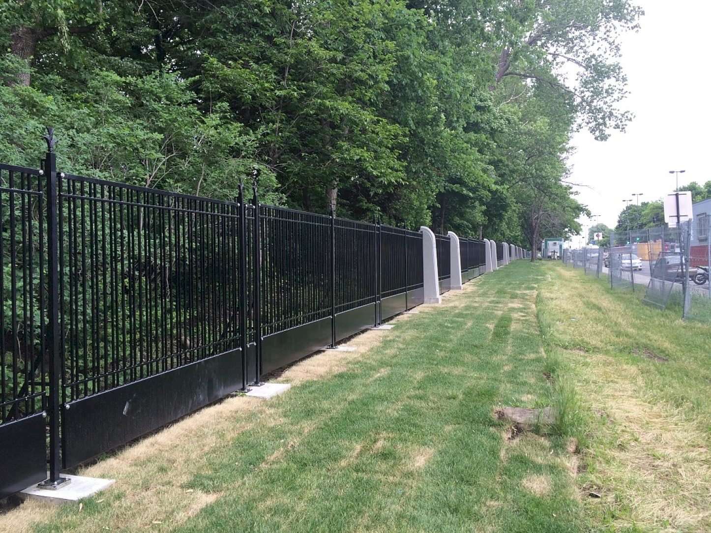 Apart from the regular urban corrosion challenges the far northern climate of Montreal results in heavy use of deicing chemicals which often bury the fence in salt laden snow banks and expose it to salt spray from passing buses and heavy traffic for many months per year.