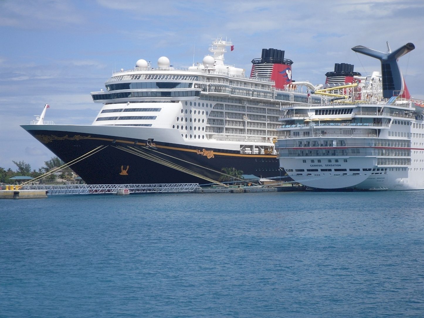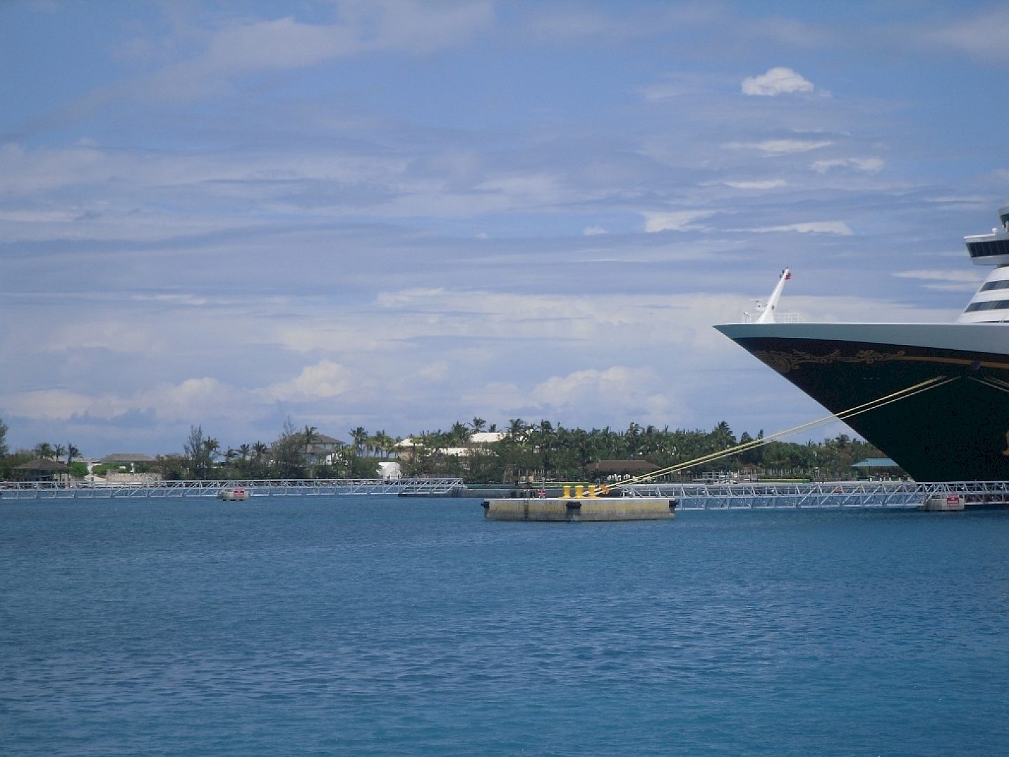 The Oasis of the Seas would be the first of these larger ships to frequent Nassau. It is 1,184 feet in length and 198 feet at its widest; 43% larger than its predecessor. These improvements included dredging the harbor, and expanding the existing harbor facilities. An arrangement of three mooring dolphins would be installed for securing bow and stern lines where the pier is physically not long enough. Suspended walkways were designed for access to these mooring dolphins.