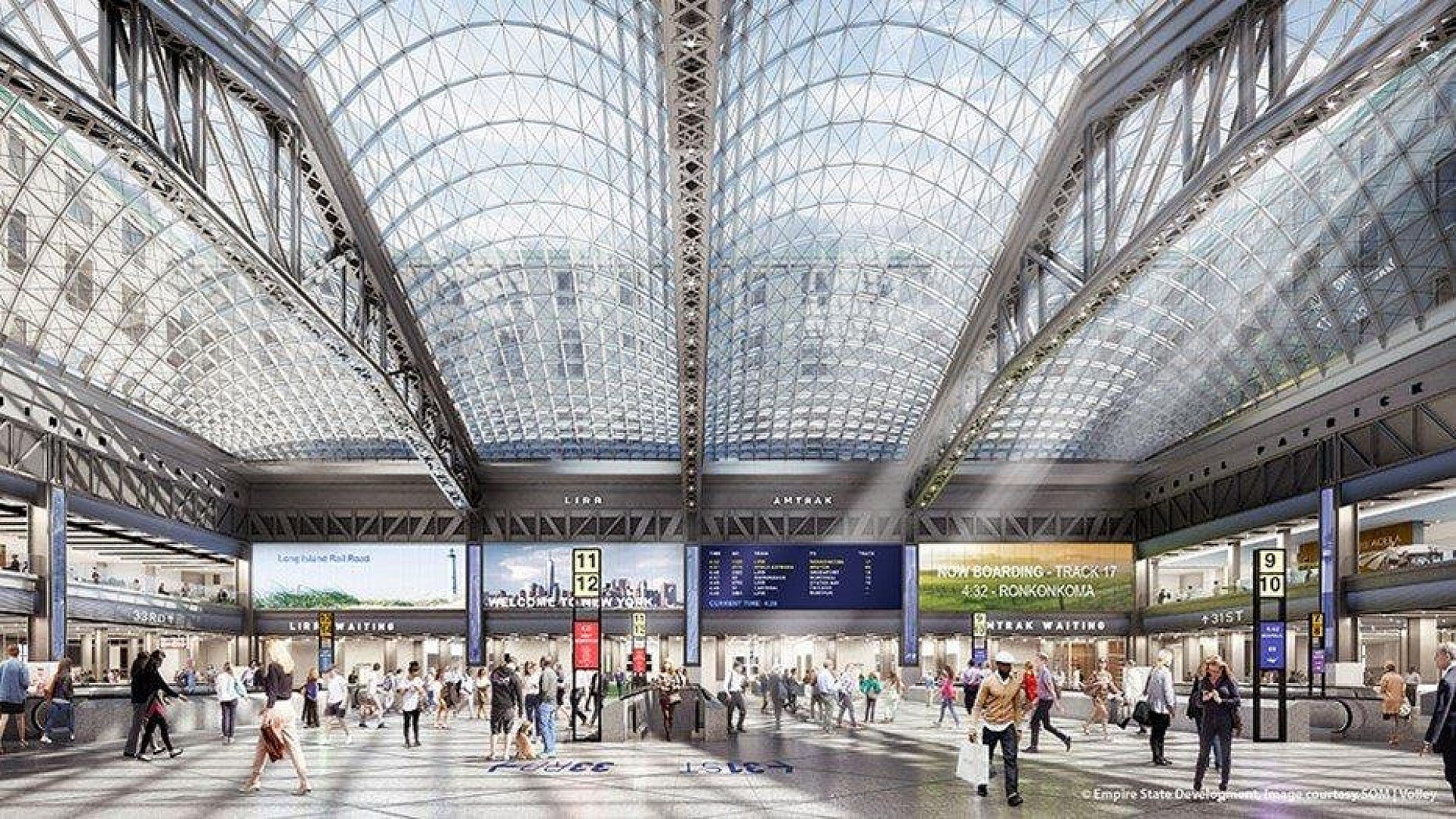 The Moynihan Train Hall is part of the transformation of the Penn Station-Farley Complex announced by Governor Andrew M. Cuomo in January 2016 to dramatically modernize, upgrade and redesign America's busiest transit hub into a world-class facility. Prior to the COVID-19 pandemic, Penn Station saw 650,000 daily riders. The complex improvements also include a comprehensive redesign of the LIRR's existing 33rd Street concourse at the current Penn Station and an extensive renovation to the adjacent Seventh and Eighth Avenue subway stations.