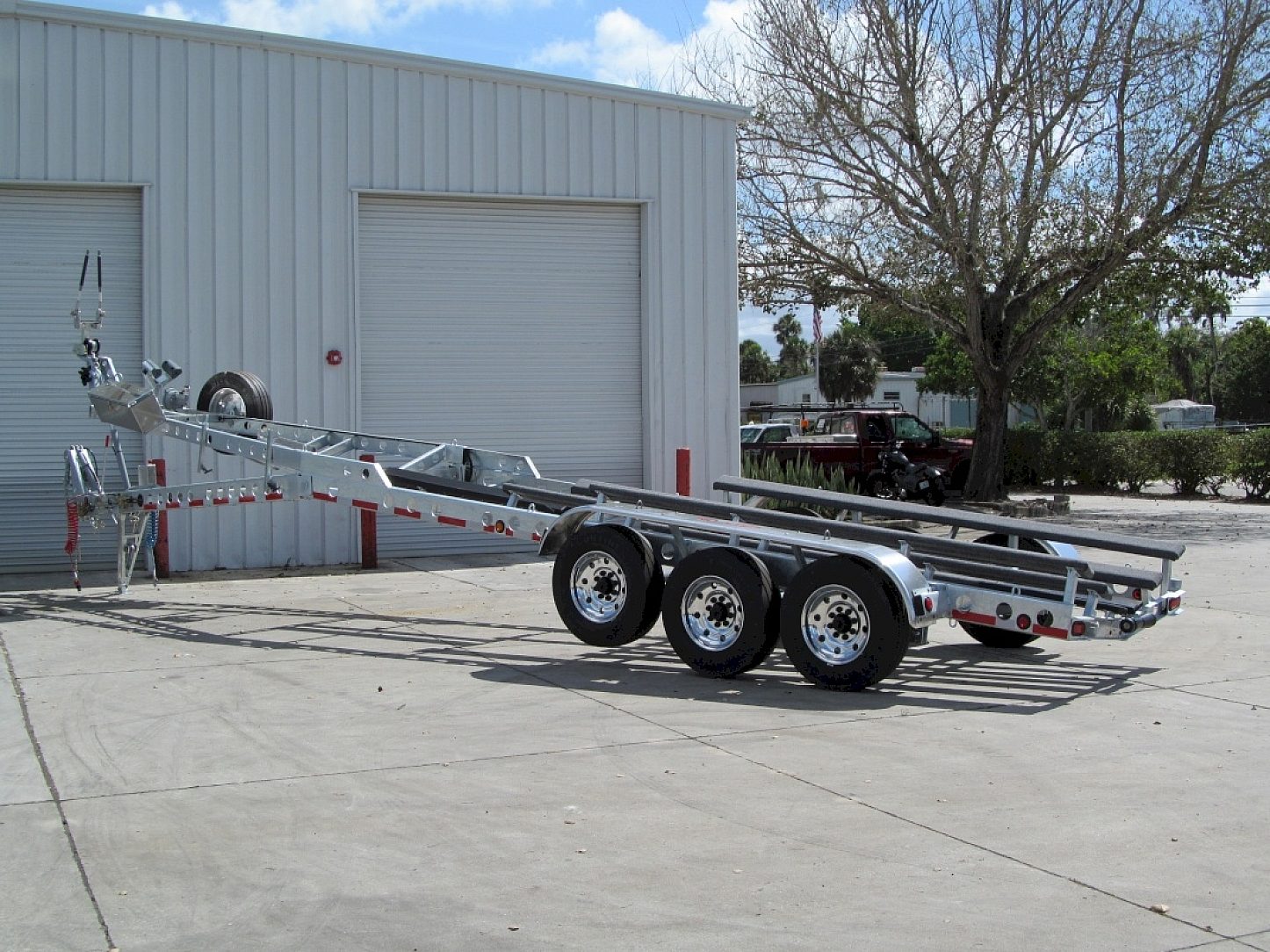 Saltwater, humidity, and Florida's tropical environment are all enemies of the steel construction boat trailer. The submersion of the trailer when launching a boat can wreak havoc on the steel members. The last thing an individual wants is a breakdown due to corrosion while trailering their boat. In this industry corrosion protection is an absolute necessity. Myco Trailers is a world leader, and has set themselves apart in the trailer industry. Myco trailers are custom built, all-welded boat trailers for a perfect fit for the hull shape of your boat.