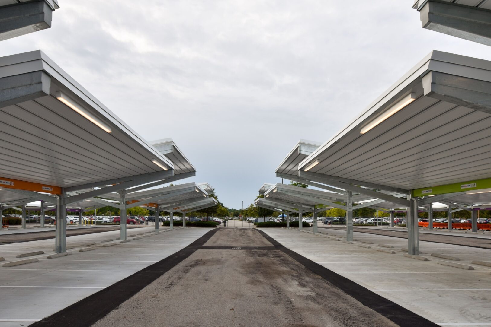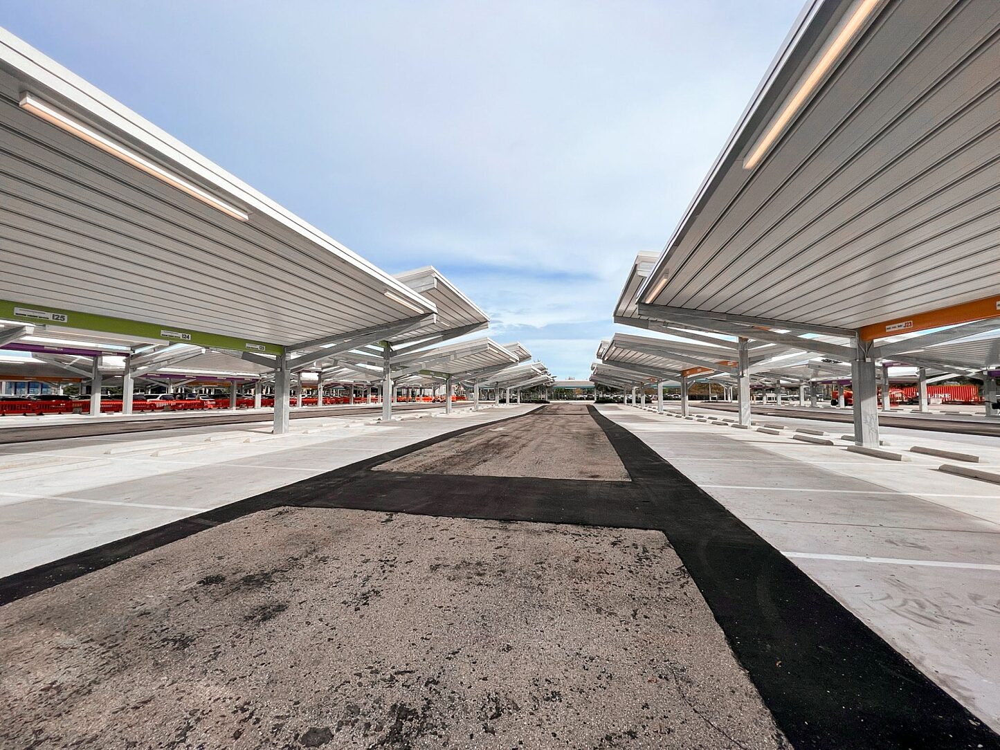 Once this project was awarded, the design team began exploring canopy concepts for the 600 plus spaces within MYRs' Rental Car Ready Return lot. The design team immediately locked on to incorporating exposed hot-dip galvanized structural steel.