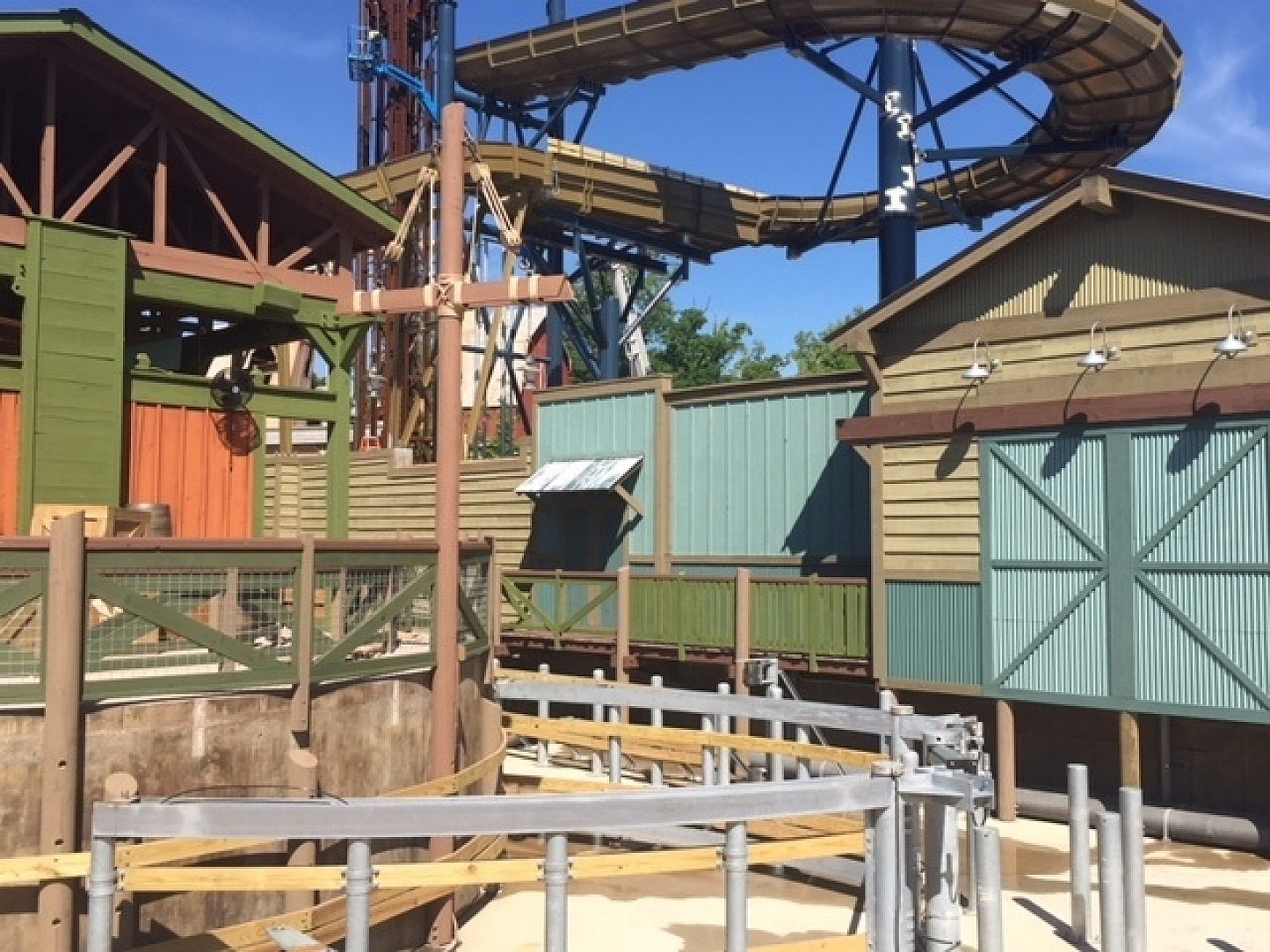 Along with the over 22 semi-loads of steel and metal with finished product incorporates a diverse appeal including over 6,000 tons of landscaping rock, 220,000 feet of timbers, and nearly 7,000 cubic yards of concrete. Mystic River Falls will be a memory for generations to come with material ready to take on the diverse climate. This ride will withstand the harsh winters and blistering heat of the Midwest. The riders will try to withstand the rough waters, chilling splash, and breath-taking drop. Hold on tight!