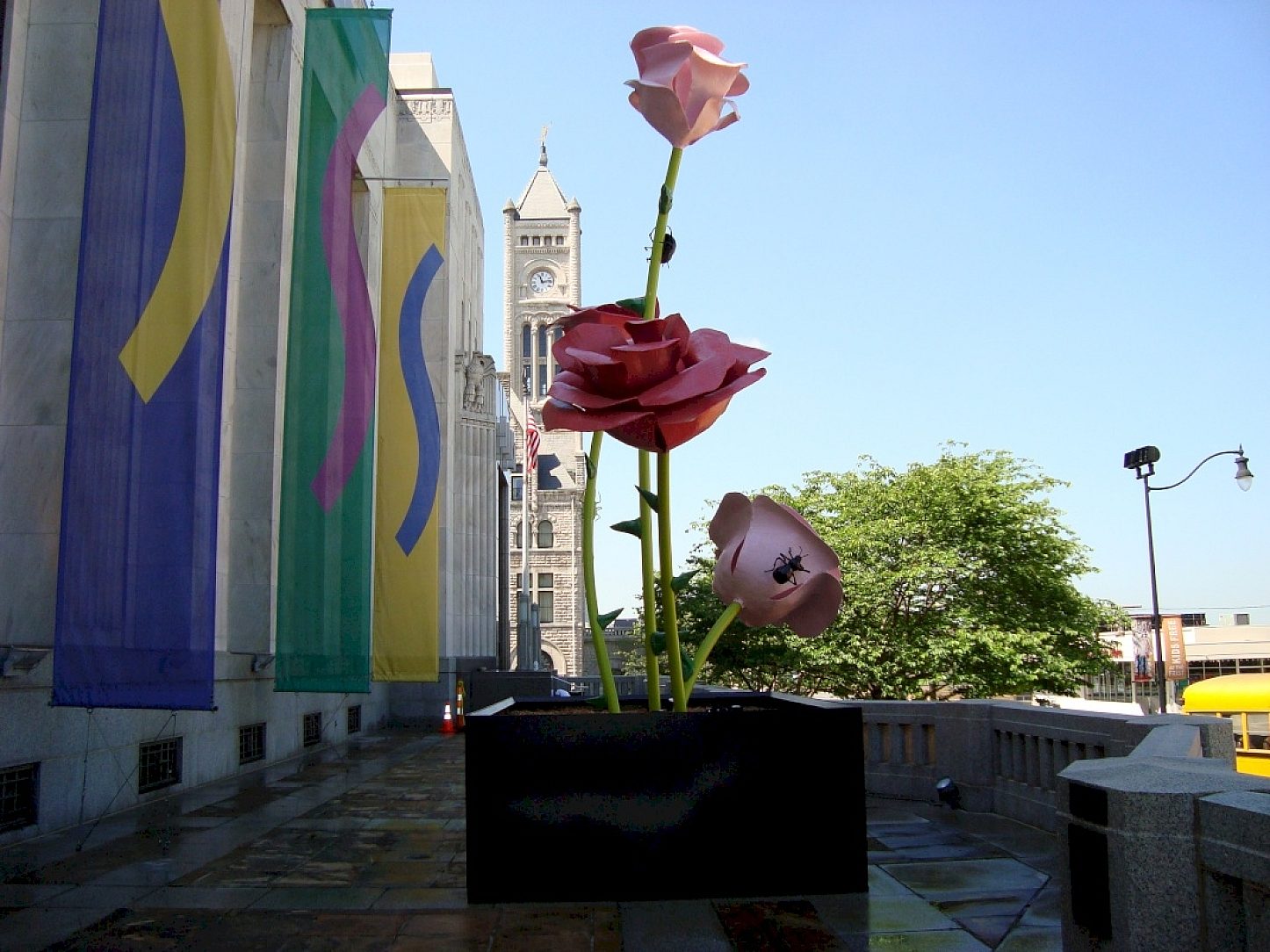 On view at the First Center for the Visual Arts' Broadway Street entrance through the end of 2013, Rose on 65th Street (2011) is from a series of thirty-eight sculptures of gigantic roses created by New York artist Will Ryman. Arrayed along New York Citys Park Avenue from January 25 through May 31, 2011, the colossal flowers, each painted in a primary color or bright pink, stood in startling contrast to the towering buildings and busy traffic of the street.