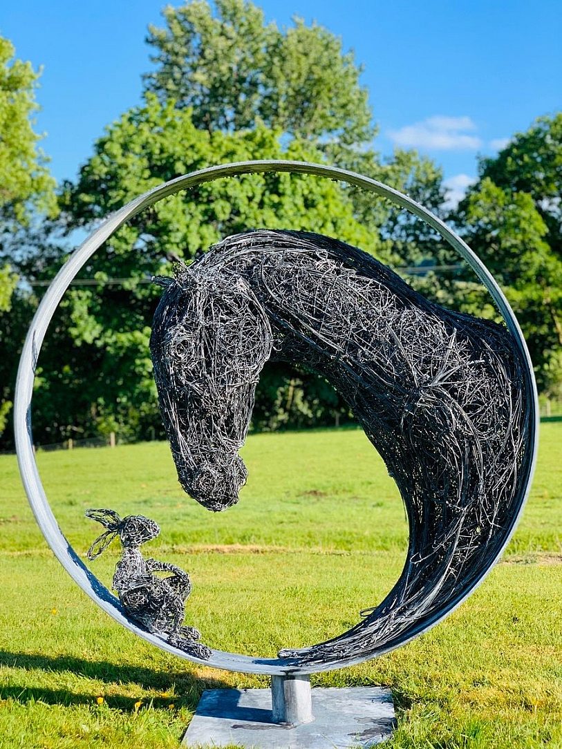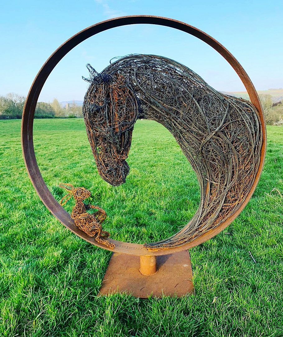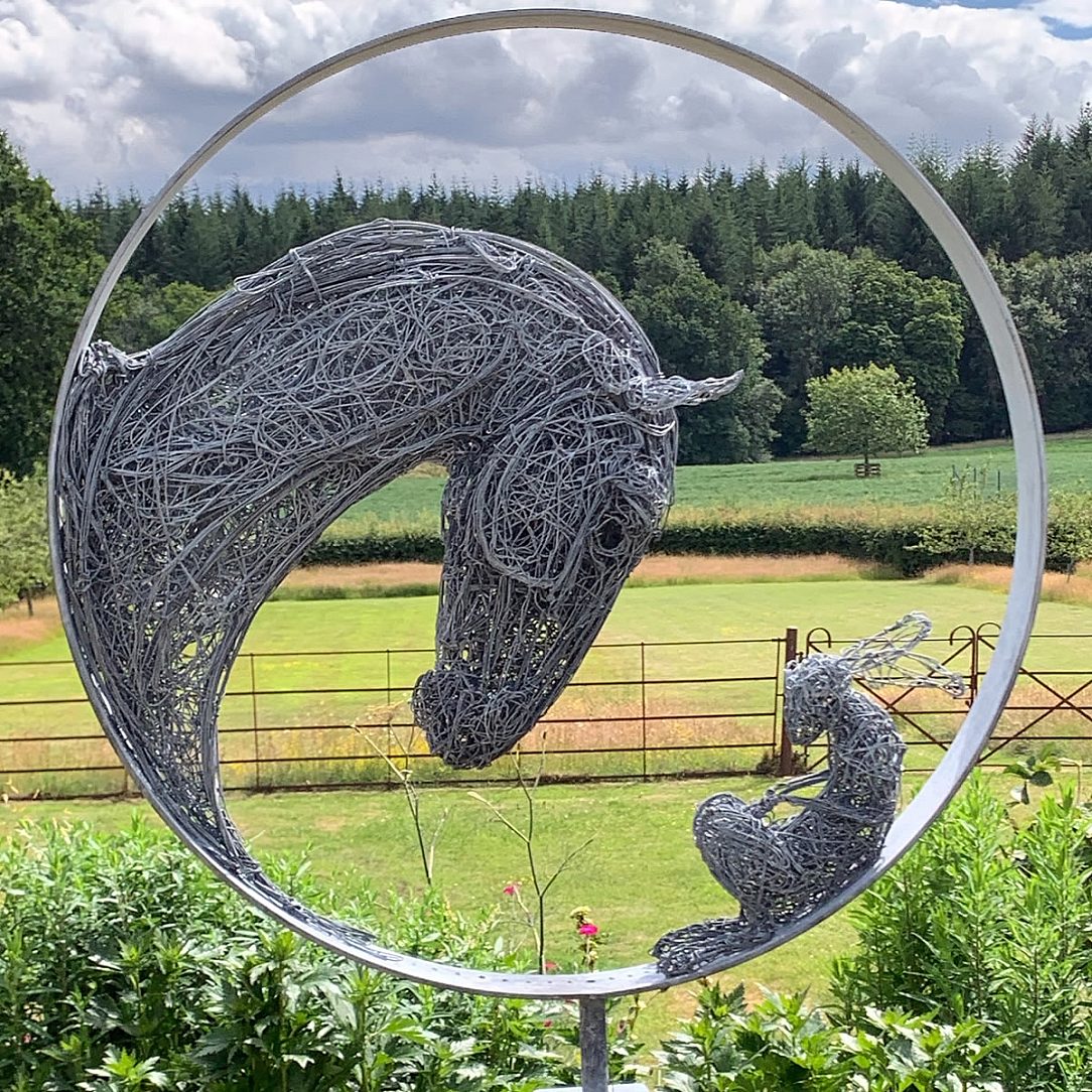 A few years ago, sculptural artist Rupert Till sketched out a drawing for a sculpture of a horse and a hare. He added it to his to-do list as something to create one day. Lockdown provided the perfect opportunity, and ‘Never Alone’ was created. Joseph Ash Walsall was happy to galvanize it for him.
