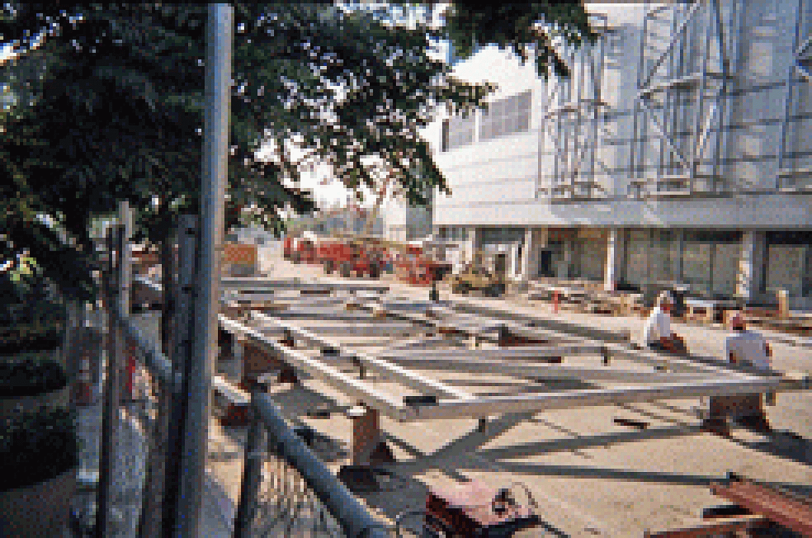 Stairs, handrails, and gate fixtures.