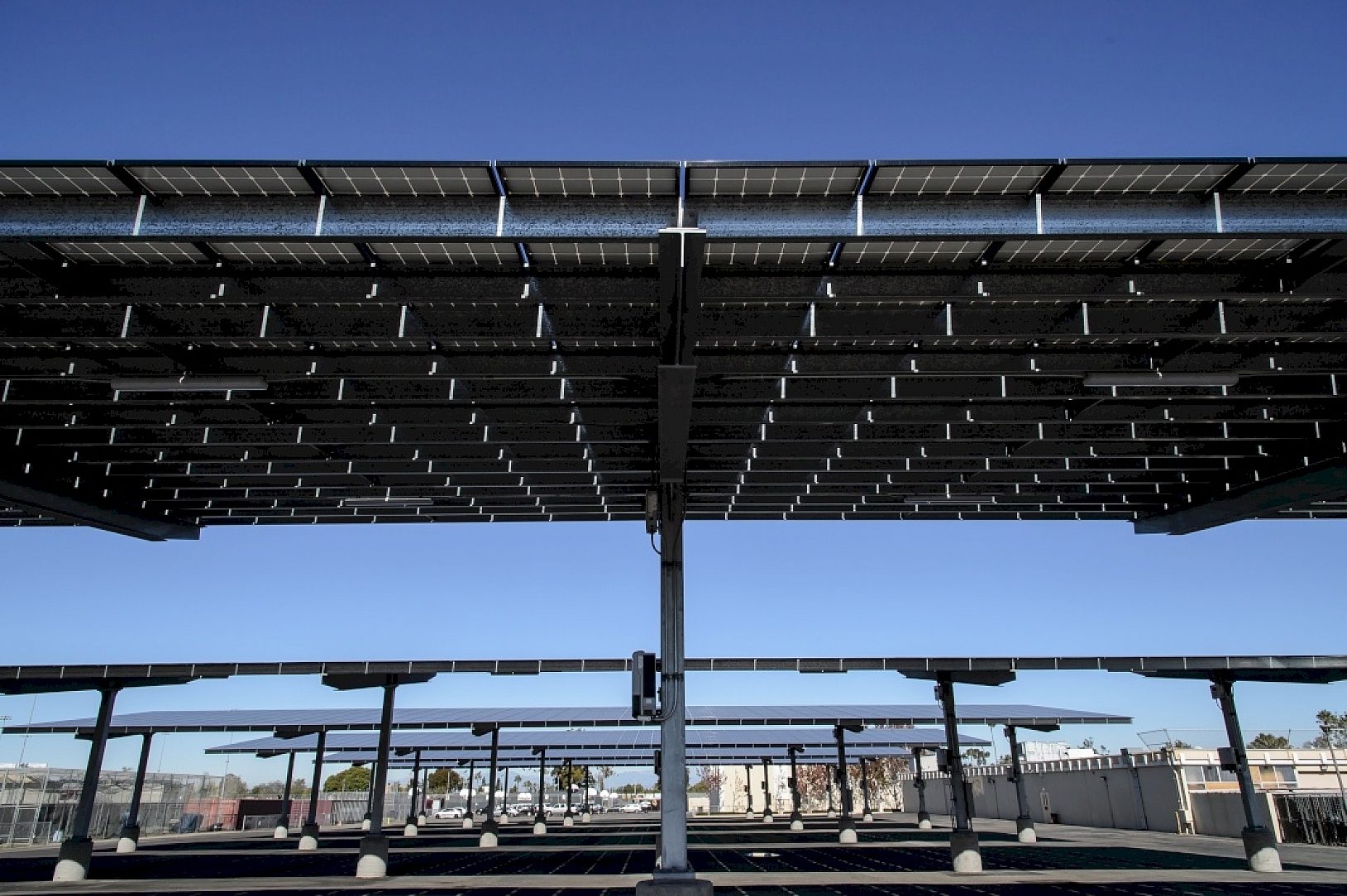 The solar carports and shade canopies used throughout the Newport Mesa Unified School District to offset the electrical costs of the schools will also be providing budget space for more educational costs for the students. A total of 11,631 solar modules were installed on the structures. In addition to the cost savings, the shade will provide play areas, eating areas, and in many cases, much-needed shaded parking. The carports serve as a teaching tool for future generations regarding responsible energy generation and use. The galvanized finish provides a longevity to the steel that is consistent with the effort to produce long lasting power supply with minimal required upkeep.