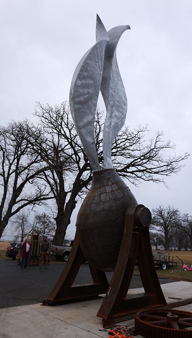 The two 18' sculpture pieces that create the flame effect are Hot Dip Galvanized