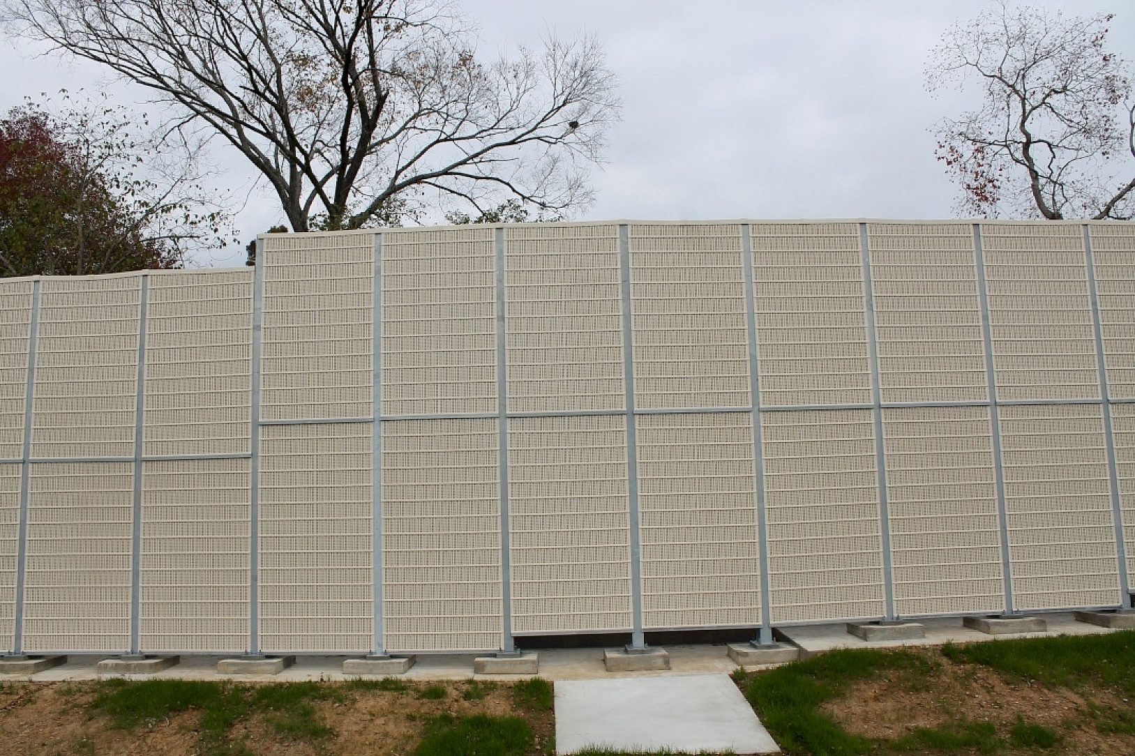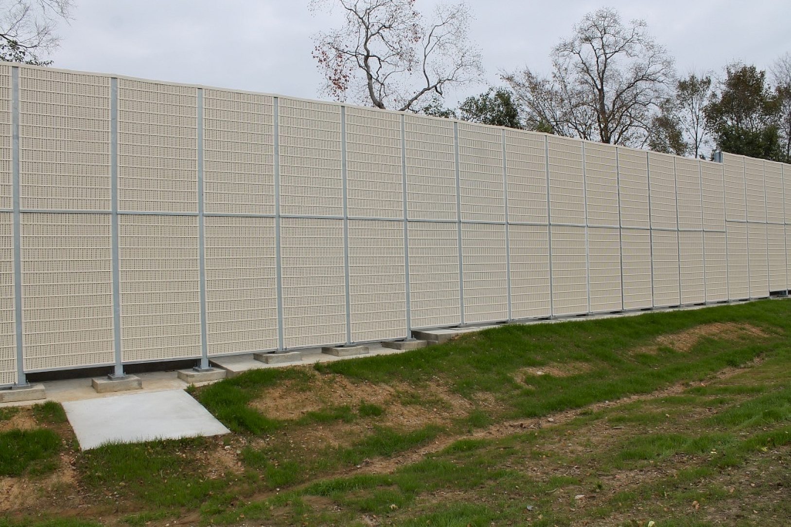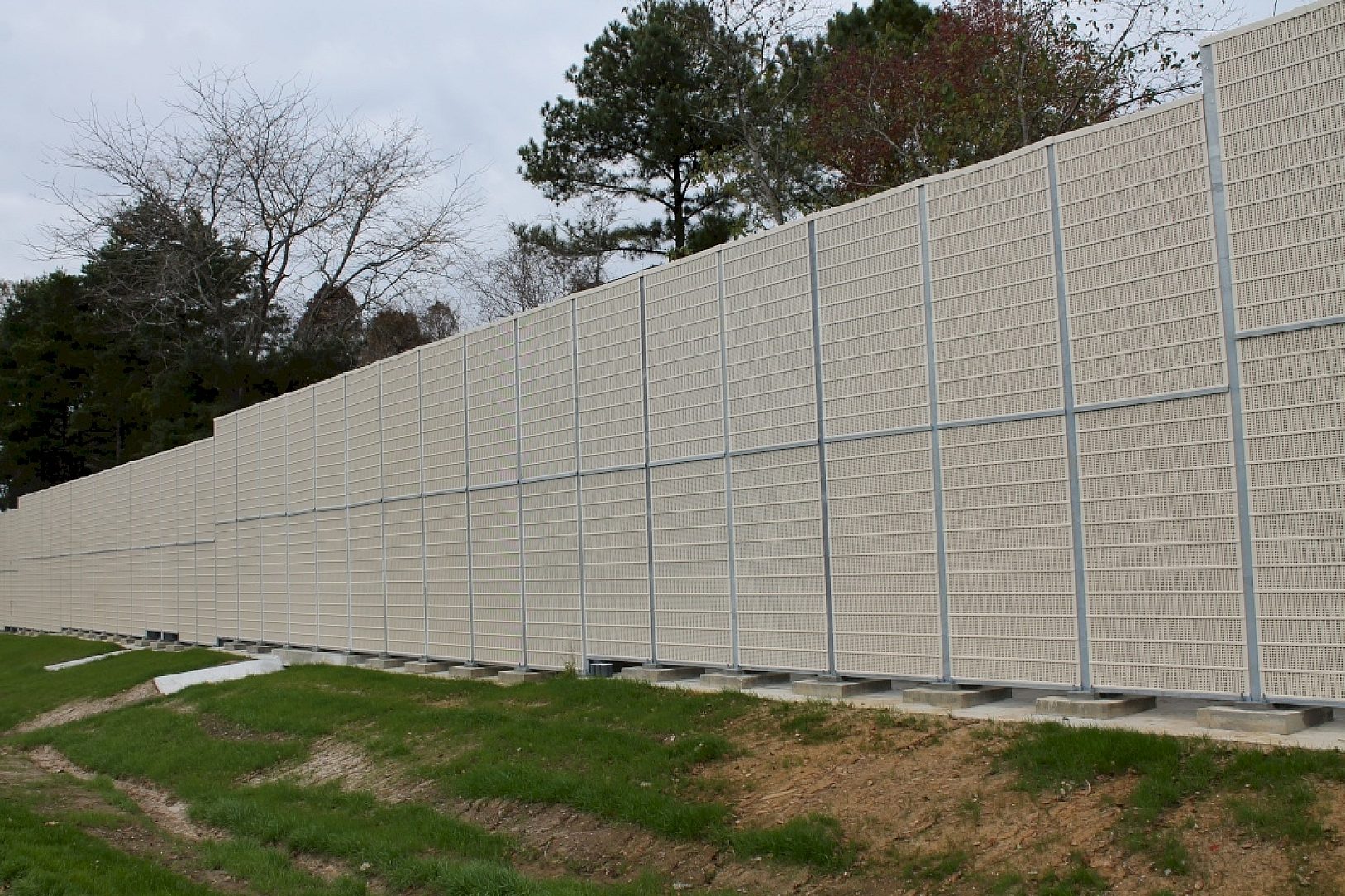 The Department of Transportation's engineers used an aesthetically pleasing noise barrier reduction system on the north side of Interstate 12 in Baton Rouge, Louisiana. The department chose to use galvanized steel because of the minimal long term maintenance costs and the durability of the coating in the humid environment of southern Louisiana.
