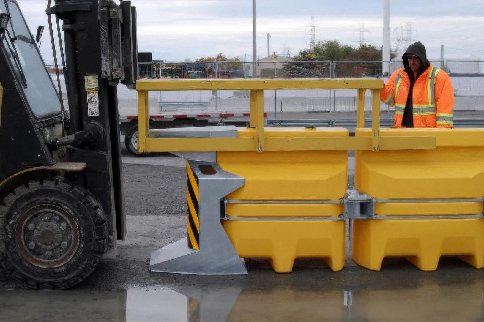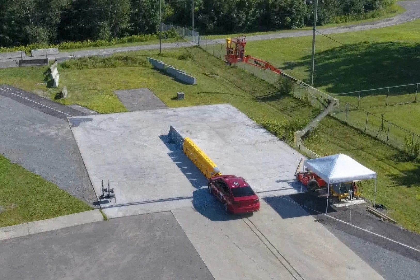 Crash cushions used in Canada face challenges unique to the harsh climate, including extreme cold, snow, ice, and high exposure to road salt. Ensuring durability under these conditions requires advanced materials and thoughtful design. Compliance with Canadian safety standards often necessitates the use of steel and engineered plastics capable of withstanding corrosion and compressing upon impact to reduce injury. To meet these requirements and increase longevity, this crash cushion incorporates hot-dip galvanizing.