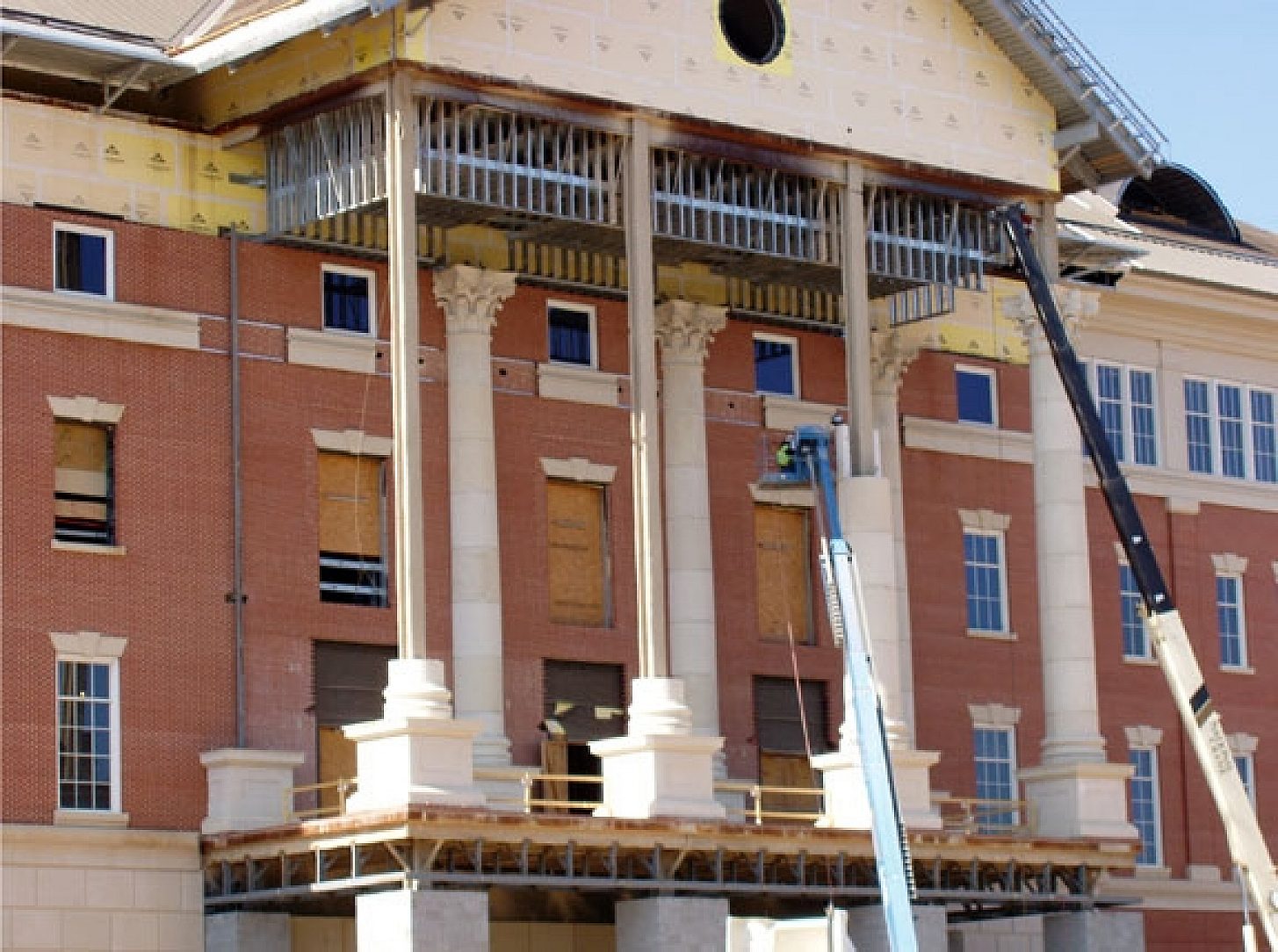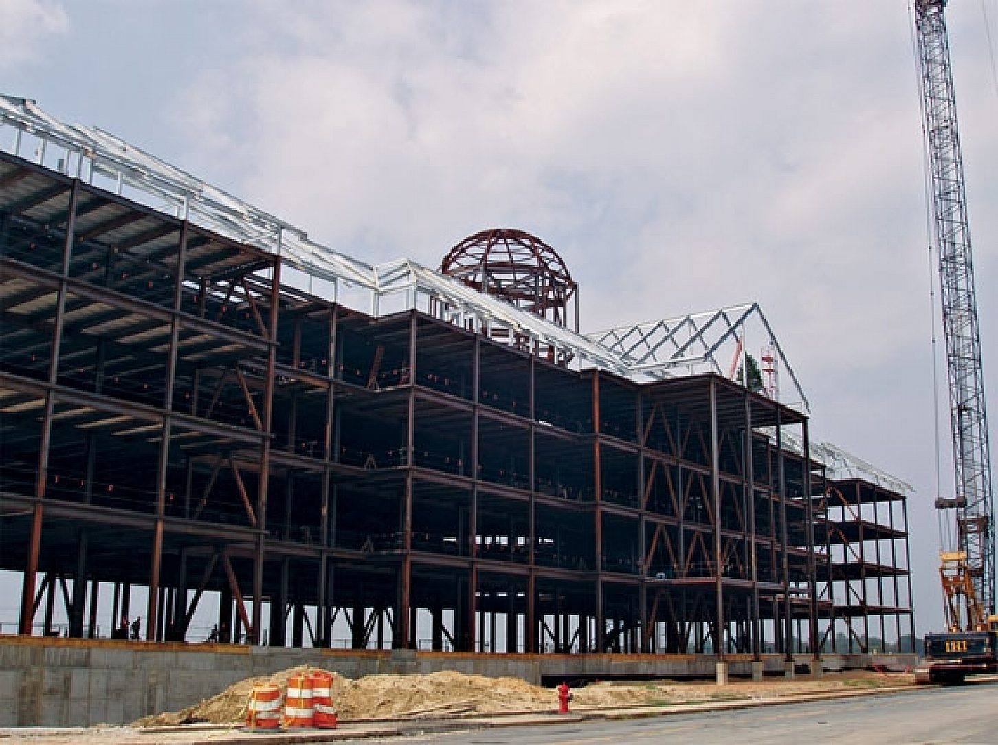 The intent of the project is to attract young talent to the region and revitalize the area to spur business growth, infrastructure improvements, and improve water treatment efforts that surround the 350 acre campus facility. At the heart of the campus is a mansard roof to visually reduce the scale of the building and eliminate a boxy appearance. The steel roof structure is exposed to the atmosphere and to eliminate any corrosion from forming, it has been hot-dip galvanized to provide maintenance free performance for the life of the structure. The specific design of the structure serves as a visual screen for mechanical systems, as well as an attractive eye-catching look that represents campus ideology. 151 tons of steel were galvanized, including wide flange beams, columns, tubes, angles, plates and channels. 220 tons of steel was used to complete the project. Hot-dip galvanizing the mansard roof not only made the assembly quick, it eliminated costly repairs down-the-road for decades of corrosion-free performance that will allow the campus to focus on what is really importantbiotechnological research.