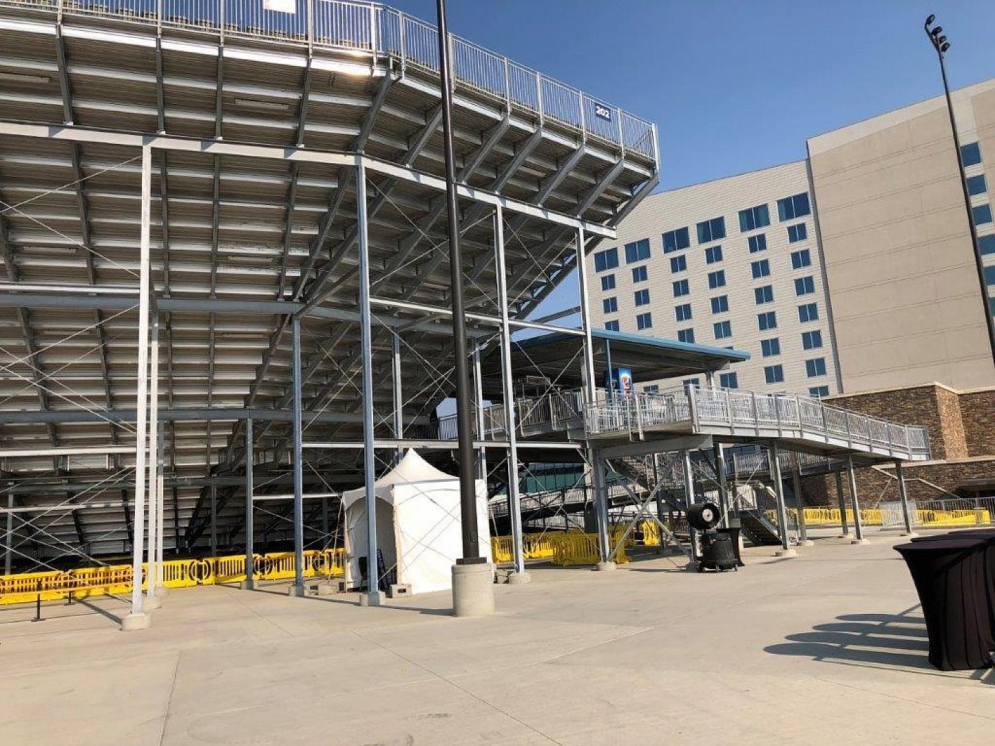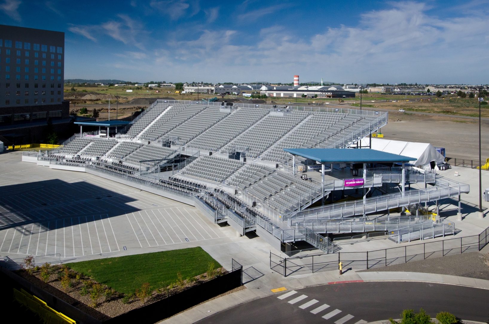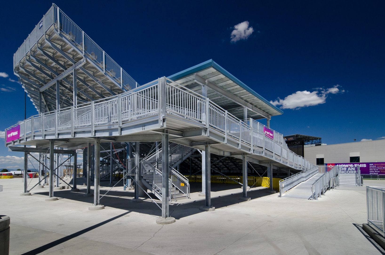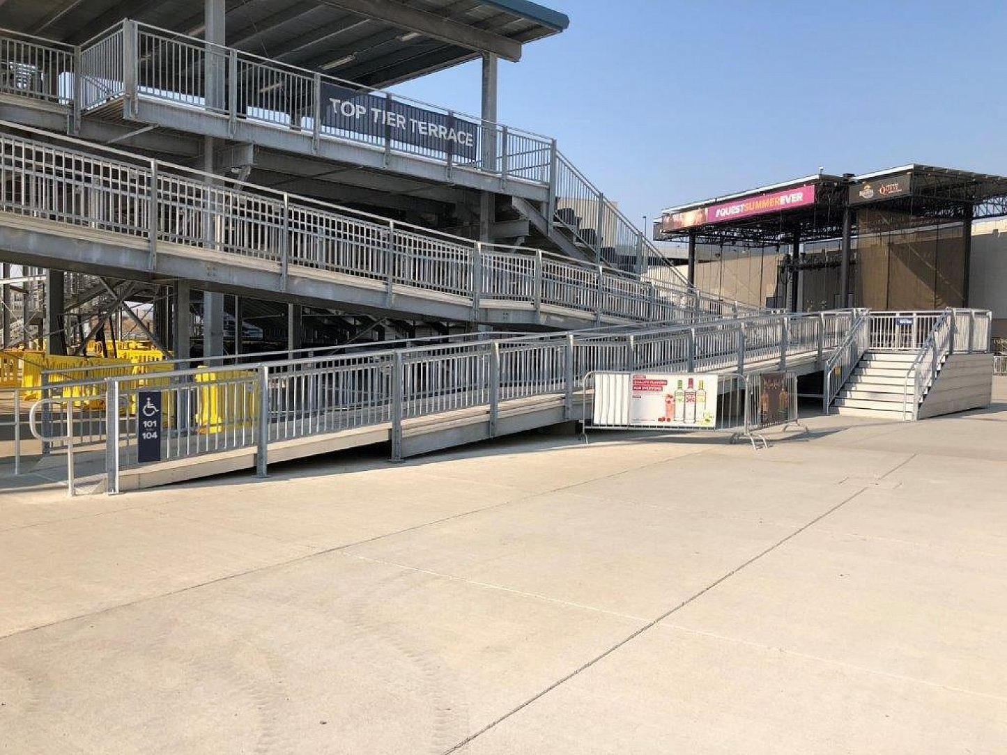 Northern Quest Resort & Casino wanted the fans to experience more than just a seat in the grandstands. Therefore the engineers and fabricator had to add drink rails for VIP seating at the front 2 rows, ramp towers on both ends serving a VIP covered mixing area for protection from inclement weather. Vertical picket guard rails were also installed for fan fall protection.
