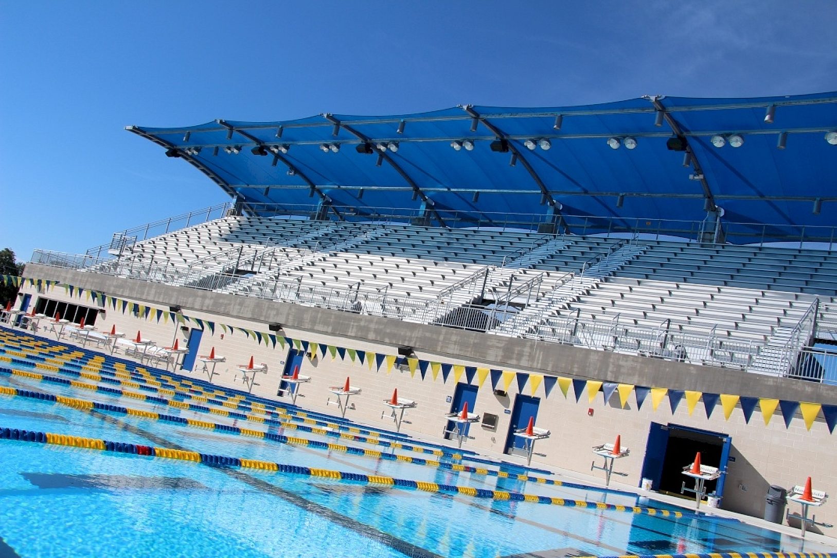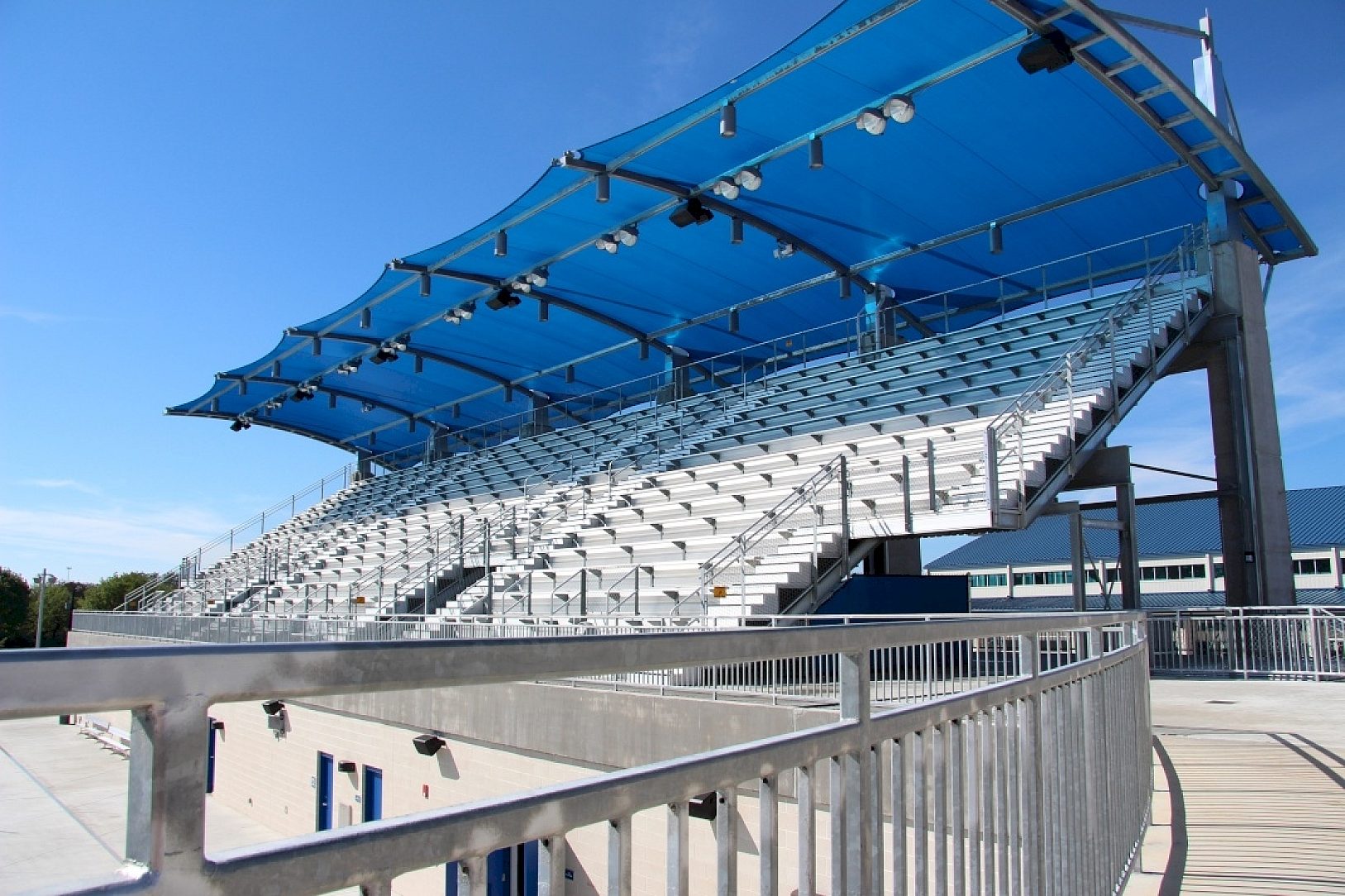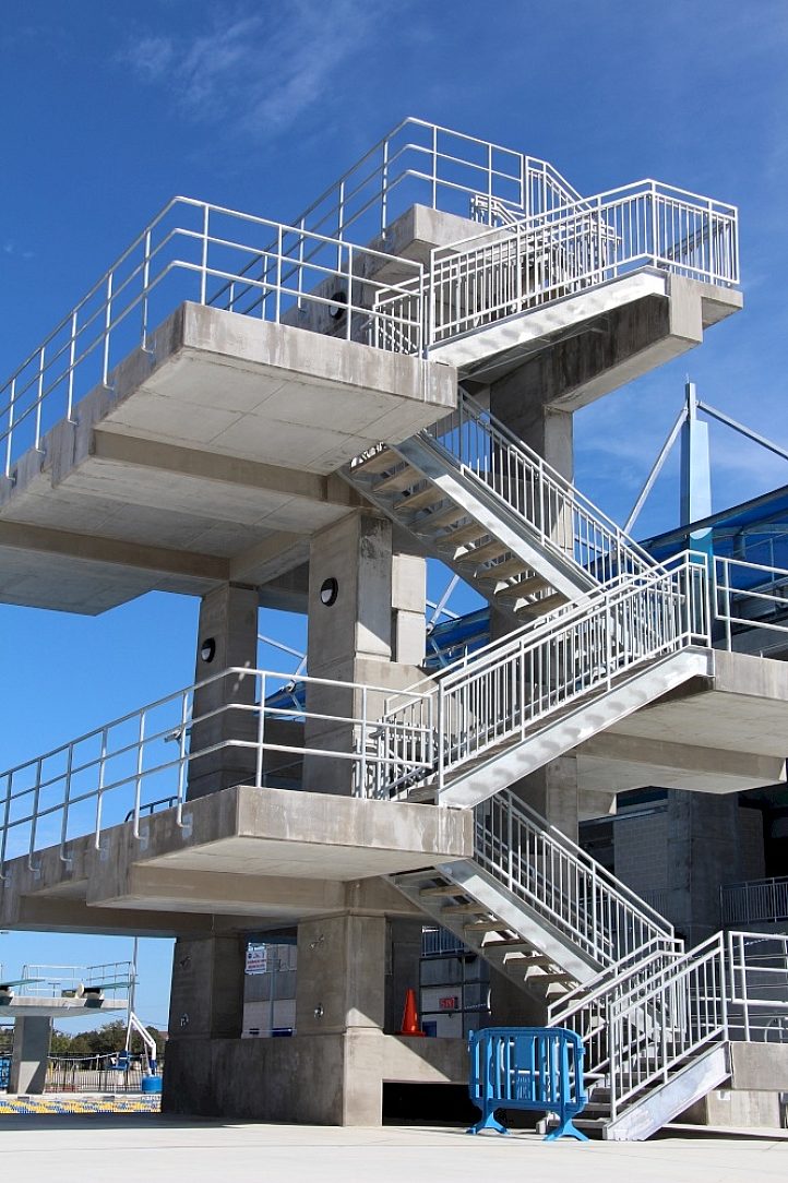 The 50 meter, Olympic-size outdoor swimming pool and 25 meter diving pool will be the only one of its kind in the Central United States. HDG was specified for the project because of its coating durability in the high chlorine atmosphere and abrasion resistance from spectators wear and tear. The aesthetic value of the exposed galvanized coating blended perfectly with the surrounding area. Prior HDG experience was a major design consideration since the project was funded by a unique partnership between Northside ISD and Bexar County, calling for 40 years of maintenance and operation by NISD. HDG meant no problems for future maintenance and sustainability.