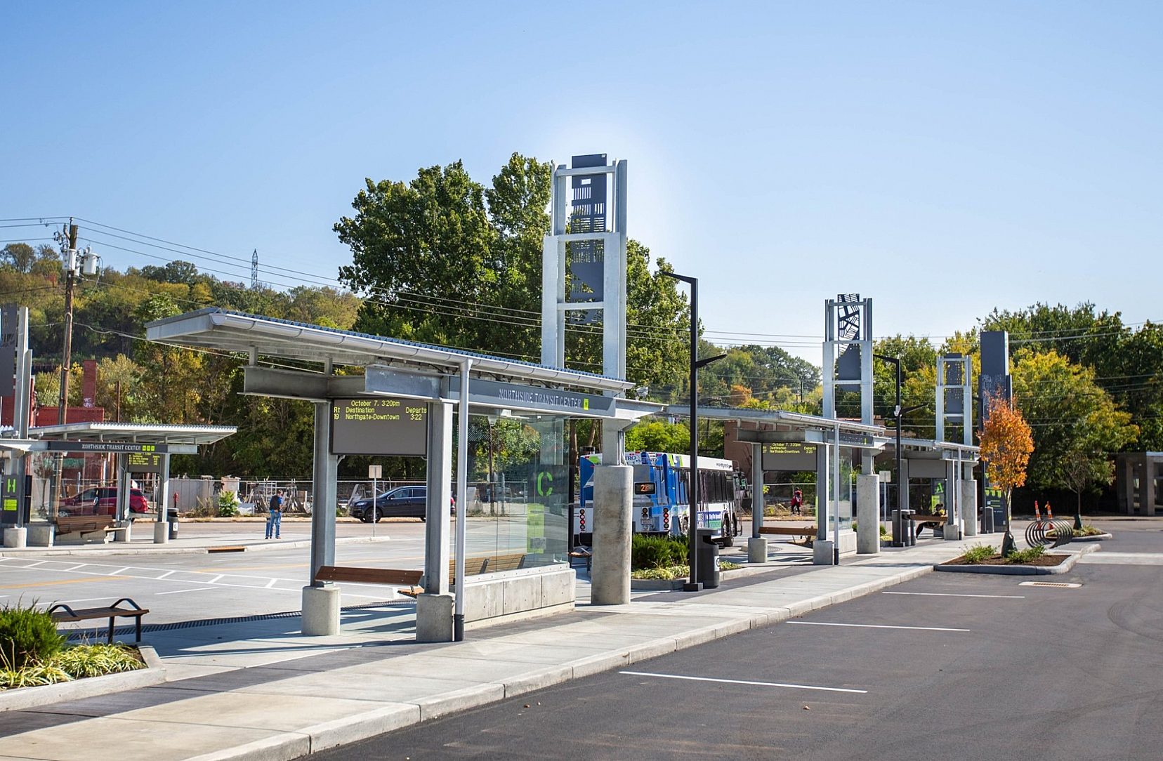 The Northside Transit Center is the culmination of many years of effort to improve the public transportation infrastructure in the Northside community. Metro broke ground on the transit facility at the end of October 2019, and just less than a year later, bus service began. The much-anticipated project offers residents and visitors a safe and efficient way to travel through one of Metro's busiest service areas in a central, off-street location.