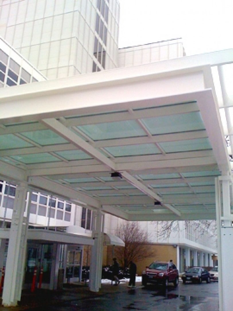 The Northwestern Community Hospital entrance canopy is one of the first features people notice when pulling into the facility. An impressively large structure powder coated in a smooth white finish welcomes patients and visitors to the hospital and provides a much needed cover from the often harsh Illinois weather.