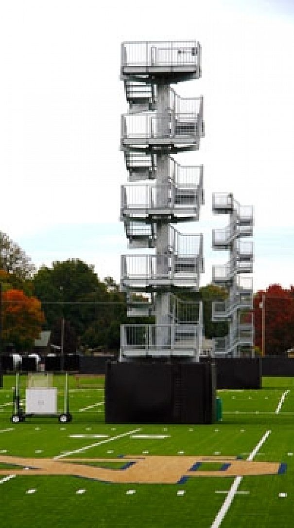 Providing coaches with a birds eye view of their practicing athletes, the Notre Dame Observation Towers loom fifty feet over the practice field. Harsh south bend winters and heavy foot traffic called for corrosion protection that couldnt be beat. After comparing of life cycle cost and sustainability, a major concern at Notre Dame, specifiers chose to hot-dip galvanize the 25 tons of steel used for the project. Initially there were plans to paint the towers, but after admiring the flawless application of HDG the owners decided to leave them plain. With galvanized steel keeping the watch towers structurally safe and untouched by corrosion, Notre Dame coaches will be able to fine-tune the teams efforts for decades to come.