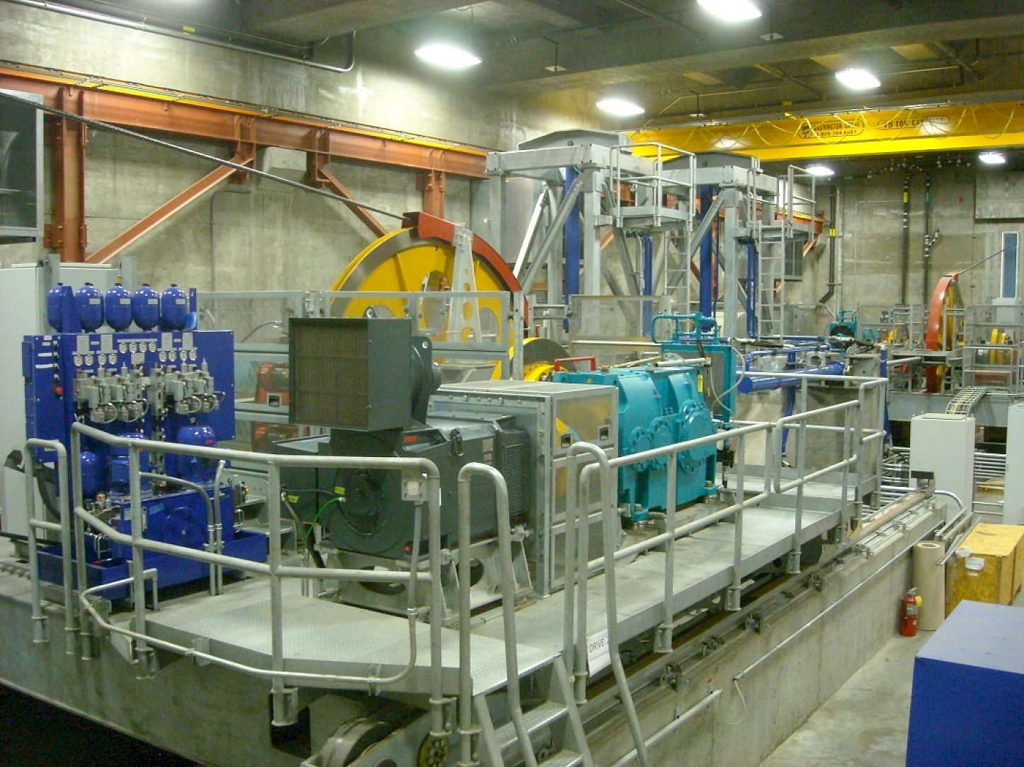 The steel propulsion system, consisting of drive frames, return frames, deflection frames, counterweight tension towers, platform hand rail and pulley frames, was specified to be hot-dip galvanized. The drive frames holding the motors were hot-dip galvanized to help ensure the reliability and cost effectiveness of the entire system. Because the drive motors are at the station, the cars themselves are relatively light and therefore do not require a heavy rail design to support the weight. This reduces design, construction, operating and maintenance costs of the rest of the cable car system. Also, this clearly makes the system very efficient and friendly to the environment.