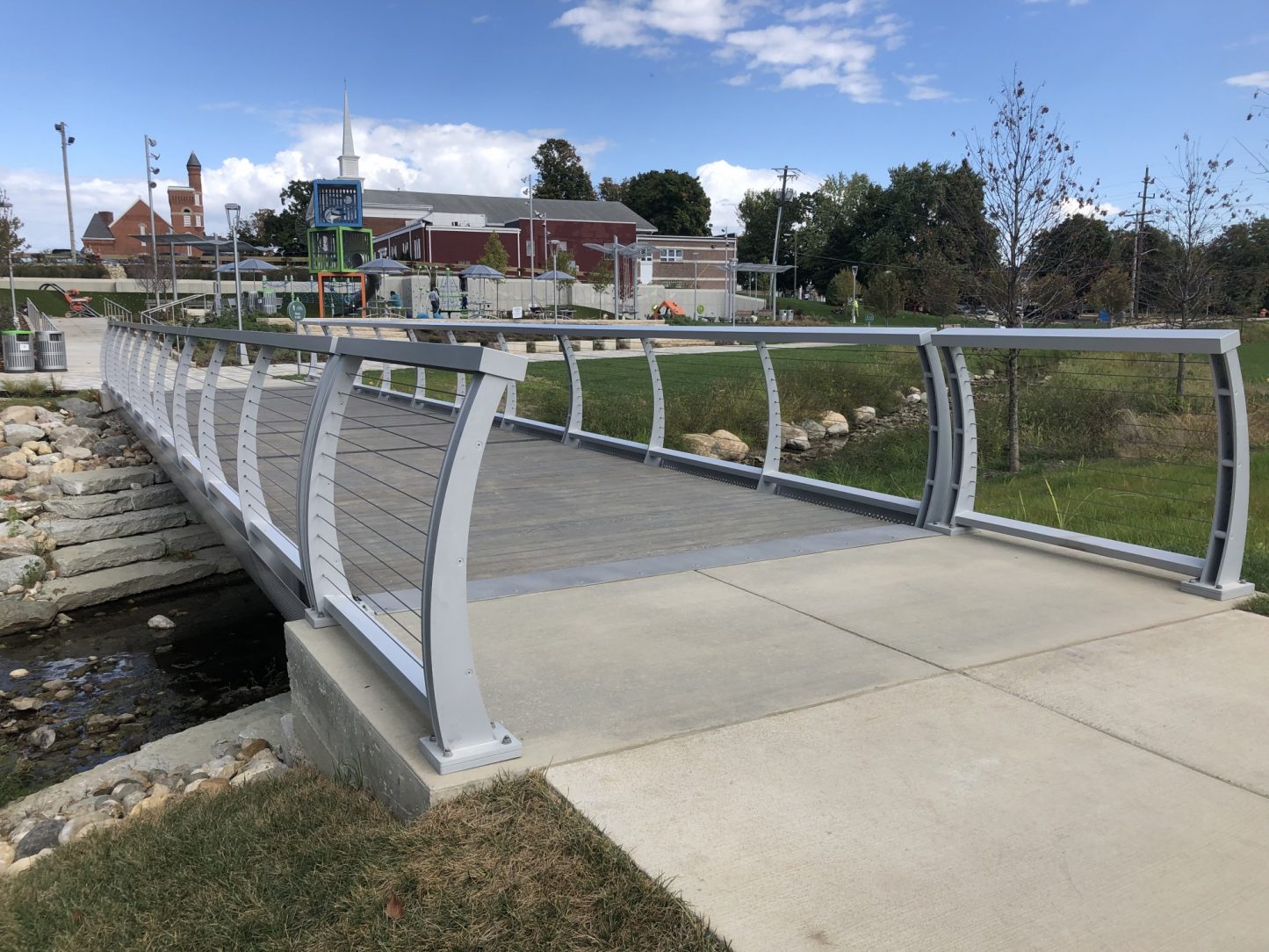 From a new playscape on one side of the creek to a festive pavilion on the other side, visitors can enjoy a stroll in the park's unique topography. The walking bridge in Old City Park reminds us that beauty can be achieved by uniting industrial elements with nature. The beautiful design matched with multiple levels of corrosion protection makes a sustainable solution for Greenwood's growing population. The bridge will allow visitors to enjoy both sides of the park for years to come.