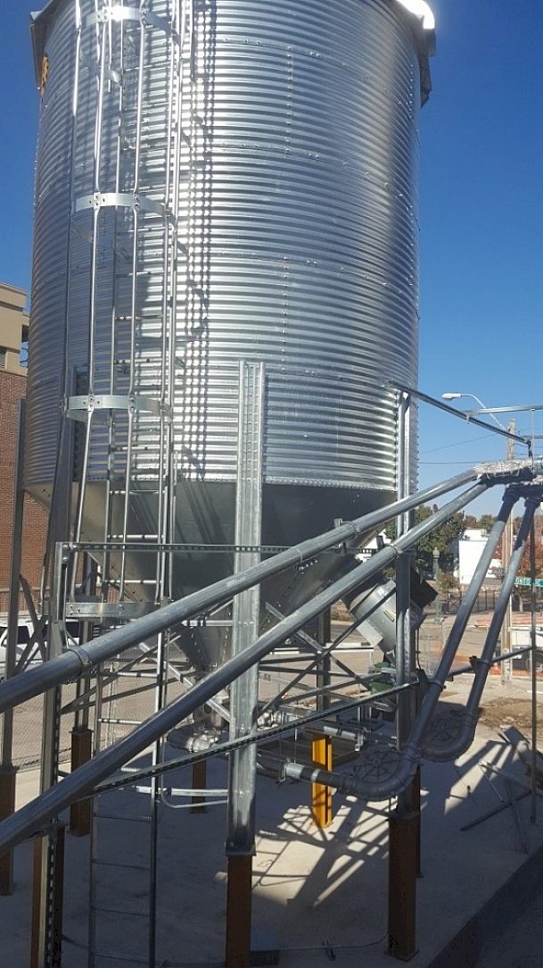 Old Dominick Distillery is a maker of Bourbon founded in Italy. Founded 150 years ago by Dominick Canale the Bourbon is still family owned and operated. The renovation of the new Distillery was born from the original plans of the original in Italy, where over a century and a half ago they used galvanized steel for their spirts and ingredient storage hoppers. The Galvanized steel, a staple in Europe for such things, was decided there could be nothing less than galvanized steel for the renovation.