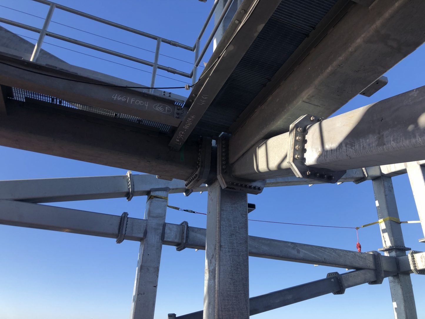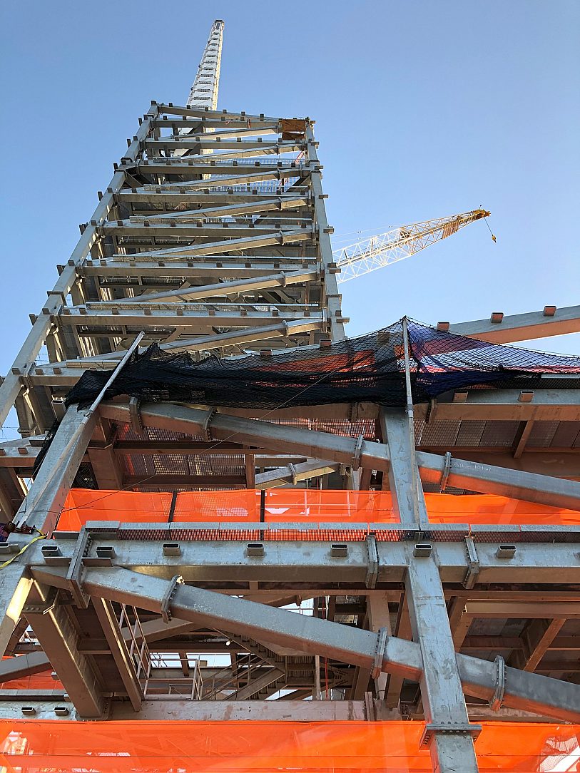 One Vanderbilt’s tiered steel tower is complete, currently the tallest office tower in Midtown Manhattan, and topped with a 100-foot architectural spire which is galvanized and painted. Floors 60 on up to the top of the spire consisted of 5500-tons of structural steel, which was hot-dip galvanized