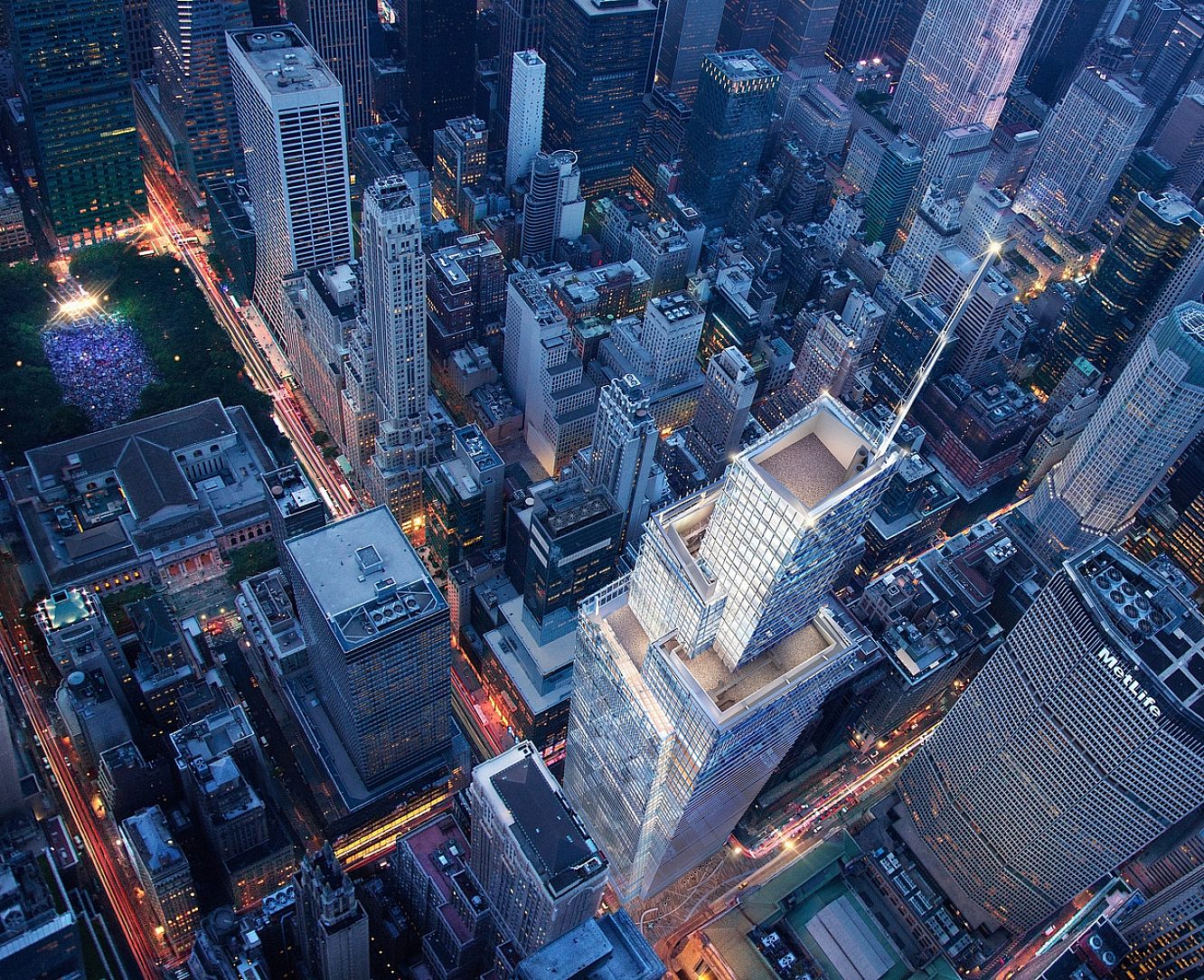 The 1.6 million-square-foot building, designed by Kohn Pedersen Fox, towers above the nearby Chrysler building by nearly 400 feet, and it’s visible from as far afield as Brooklyn and Queens. But at street level, there are gestures to the public that keep the building from feeling too grossly out of place. The block-long stretch between 42nd and 43rd streets on Vanderbilt Avenue will become a car-free pedestrian plaza. There will also be a transit hall, open to the public that connects the building and the streetscape to Grand Central below. And even though it towers high above Grand Central Terminal it will not obscure the landmark.