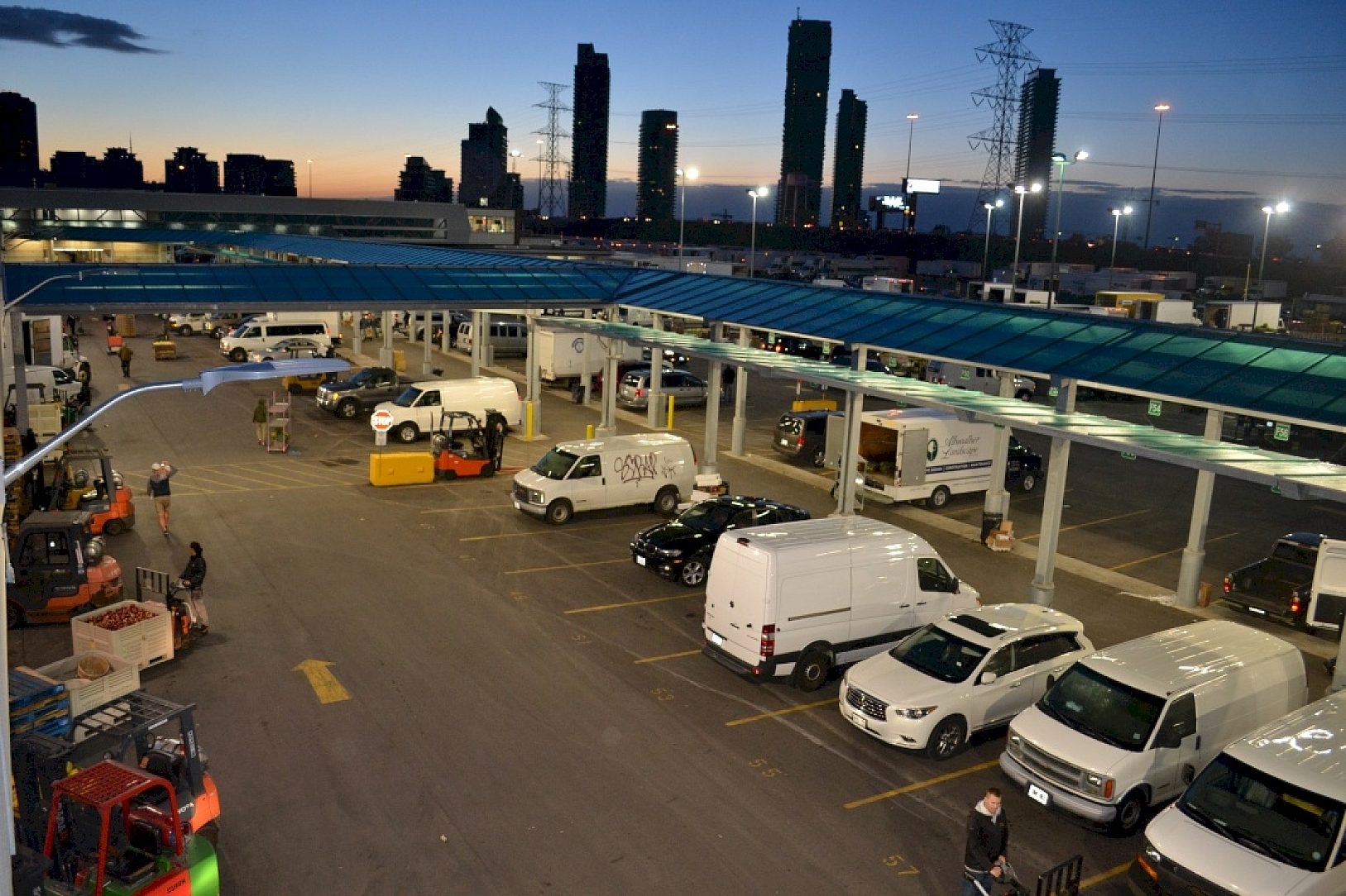 The Ontario Food Terminal provides a central location for Ontario growers and shippers and is open for deliveries 24 hours a day, 7 days a week. The terminal has over 5,000 registered buyers and facilitates trade in Ontario as well as other provinces and regions within the United States. It is anticipated that the location of the Terminal will remain relevant for many years and is strengthened by the fact that many tenants have placed warehouse facilities near the Ontario Food Terminal. Connection tie-ins were included in the canopy frame design for future expansion. The majority of daily trade takes place in the early morning hours before the heat of the day and allows shippers the opportunity to avoid high traffic congestion when delivering product to retail markets. The Ontario Food Terminal operation schedule fit with the project installation that took place while the Ontario Food Terminal remained fully functionala welcomed occurrence in structural galvanizing expansion projects!