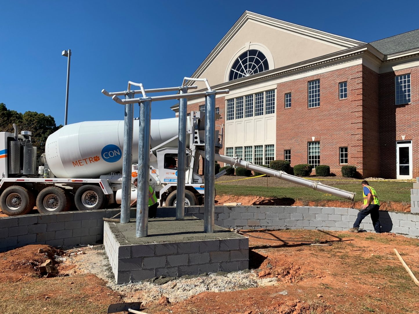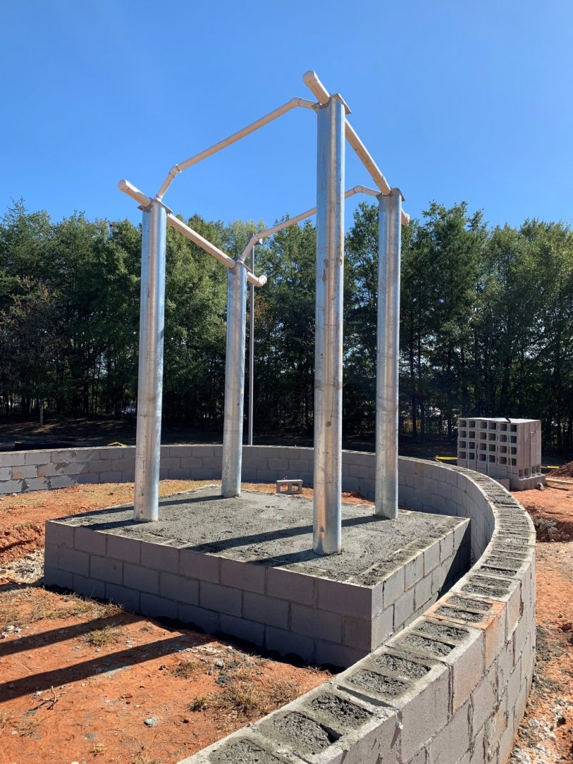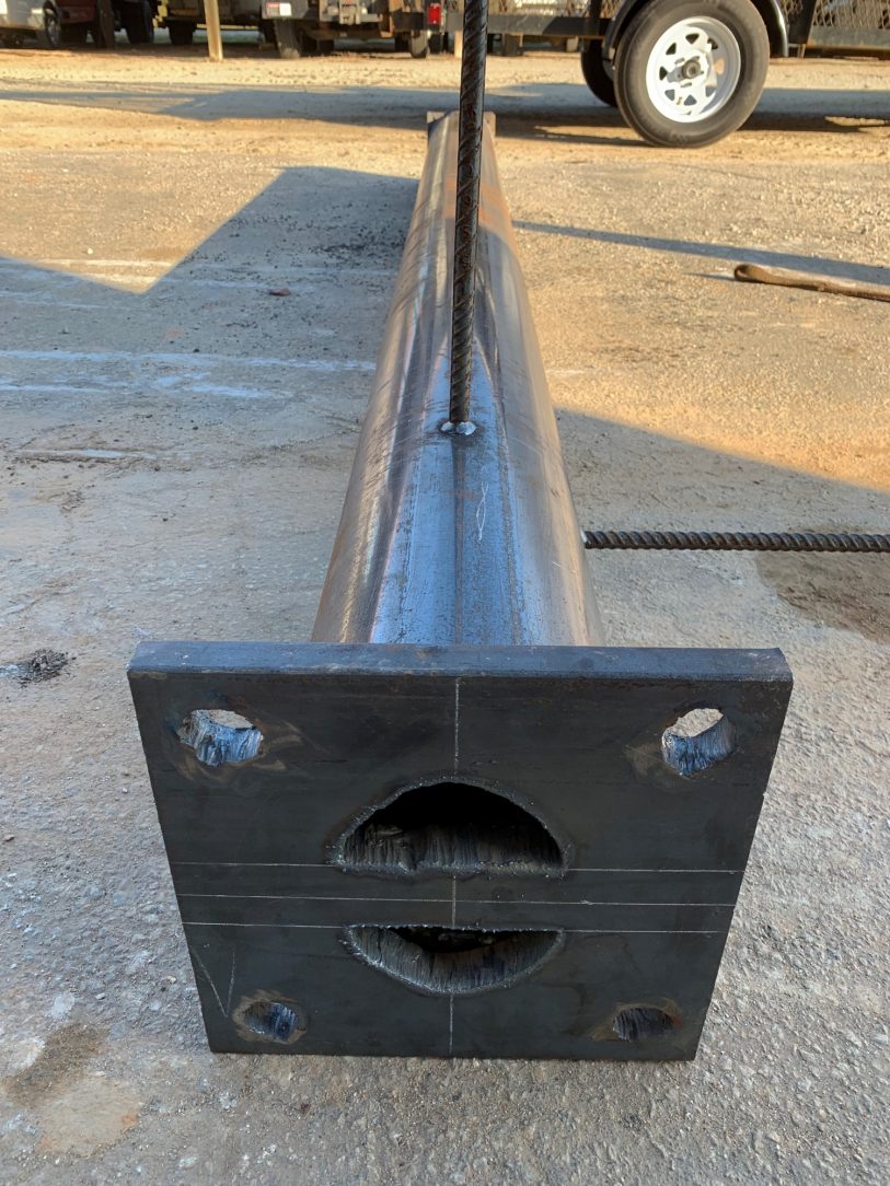 8" steel pipe columns and supports to hold up the helicopter memorial. Base plates and helicopter skid encasement.