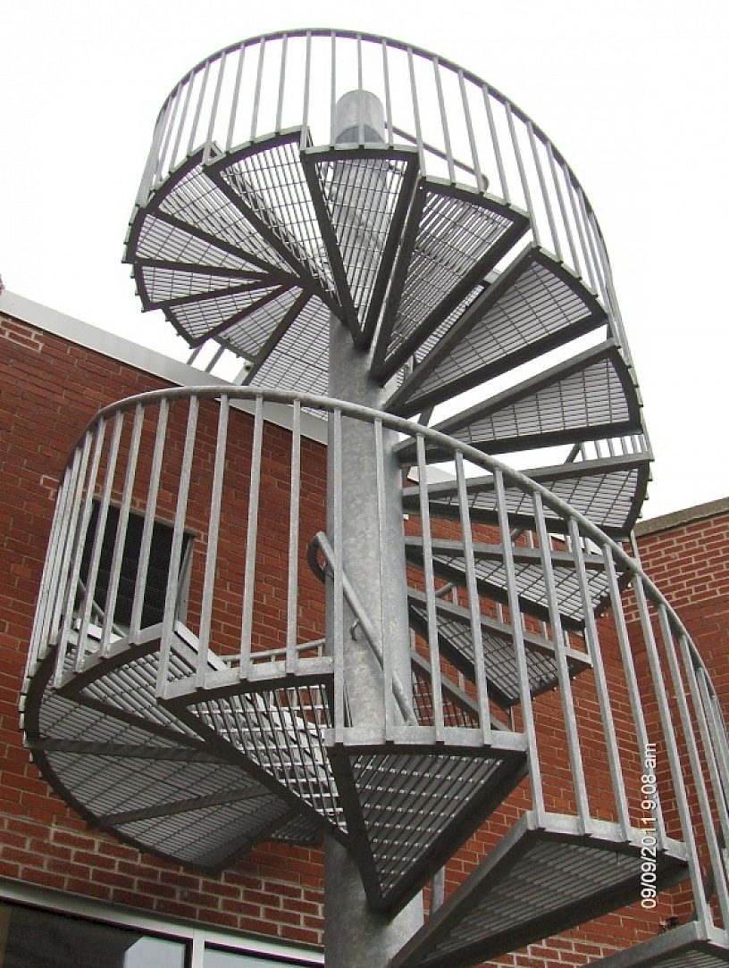 The mature zinc patina was desired due to the natural fit with the other structures and rural location of the facility. As a result, hot-dip galvanizing (HDG) was the only coating specified for the spiral staircase. The ease of specifying was also bolstered by the industrial application and exposure to the seasonal environment and harsh chemical exposure. HDG answers all of the long term corrosion protection questions along with low initial costs and long term maintenance being zero for 50+ years.